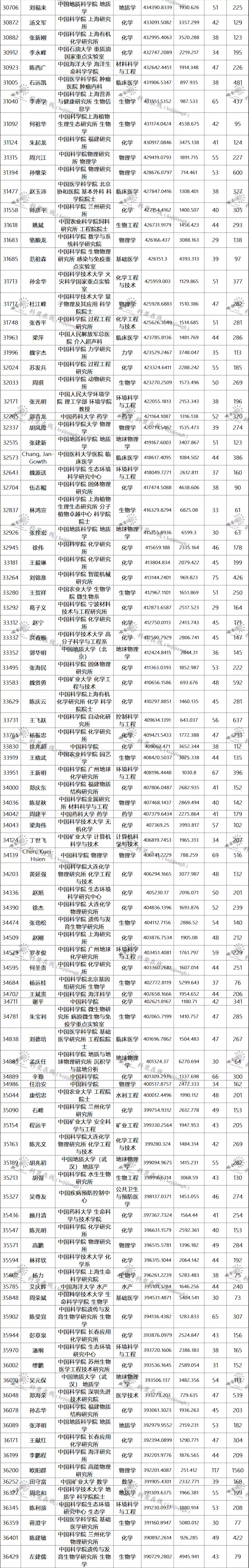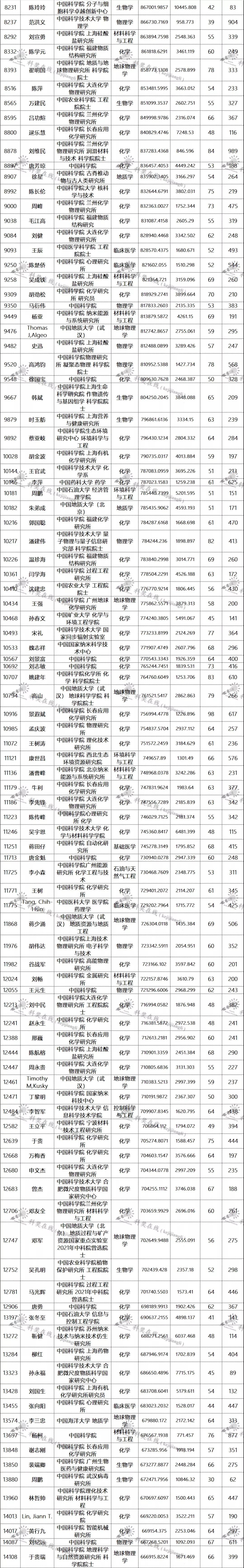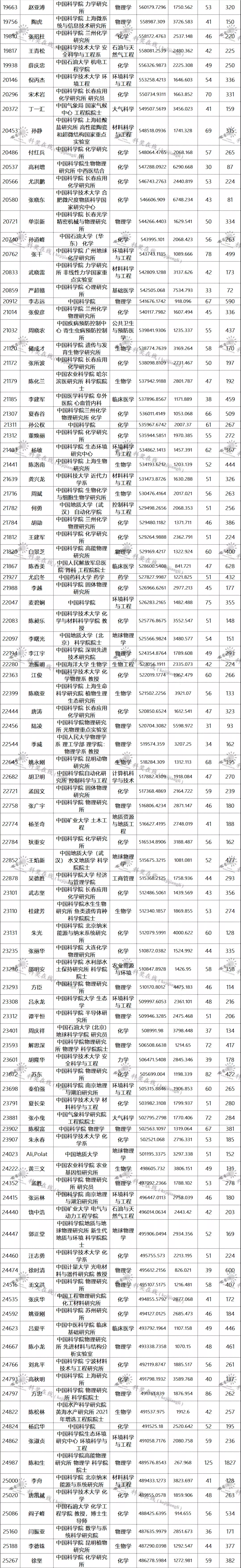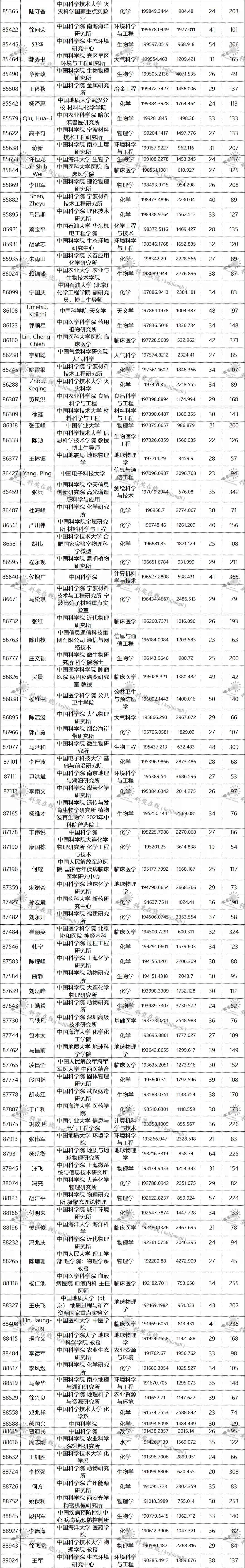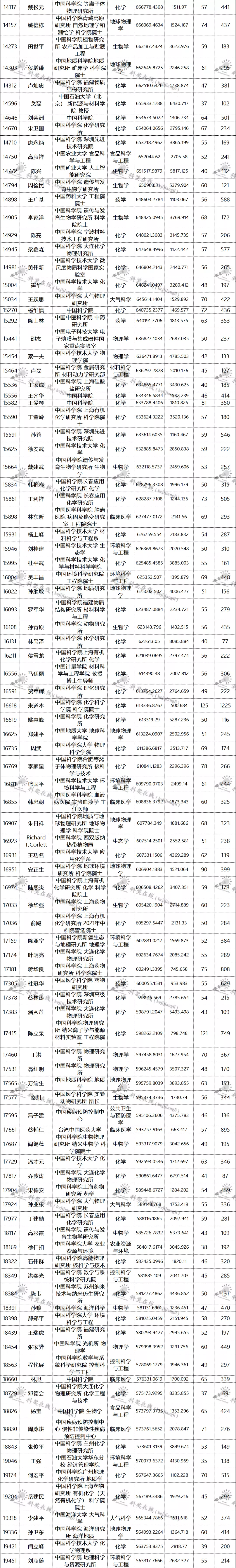 三、全球排名前100000以内的中国学者名单