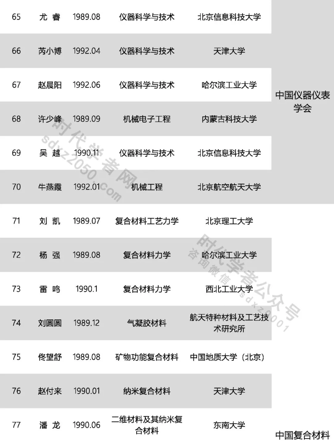 根据《中国科协青年人才托举工程管理办法》《中国科协青年人才托举工程实施细则》《中国科协创新融合学会联合体青年人才托举工程管理办法》及《中国科协办公厅关于公布第七届中国科协青年人才托举工程项目立项结果的通知》(科协办函创字〔2021〕251号)的相关要求,中国科协创新融合学会联合体(以下简称“联合体”)经各成员学会初审及联合体评审,从共计339位符合本项目申报条件的候选人中,确定推荐常冠男等93位青年人才入选第七届(2021-2023年度)中国科协青年人才托举工程。现将入选名单及遴选专家相关信息予以公示,公示期为1月12日-1月18日。公示期内如有异议,请书面实名向联合体反应,匿名及逾期意见不予受理。