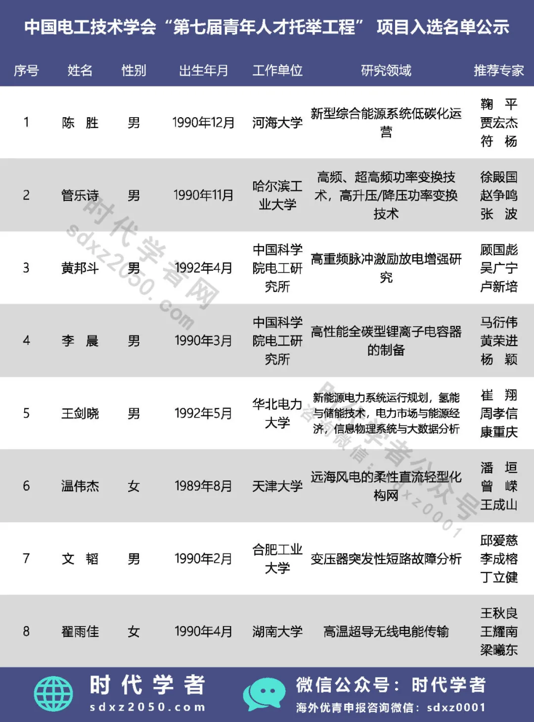 第七届“青年人才托举工程”项目入选人名单