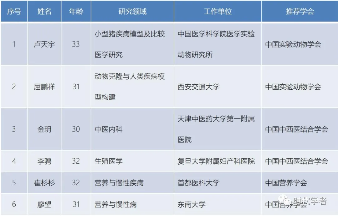 第七届“青年人才托举工程”项目全国创新争先奖牌团队入选人名单