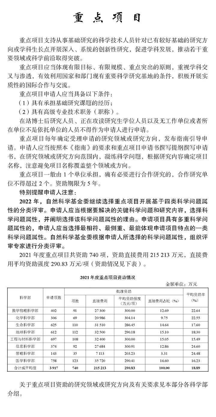 相较于2021年的项目指南,粗略看来2022年度项目指南变动不大。最重要的几项改革在指南发布前均已发出公告,比如: