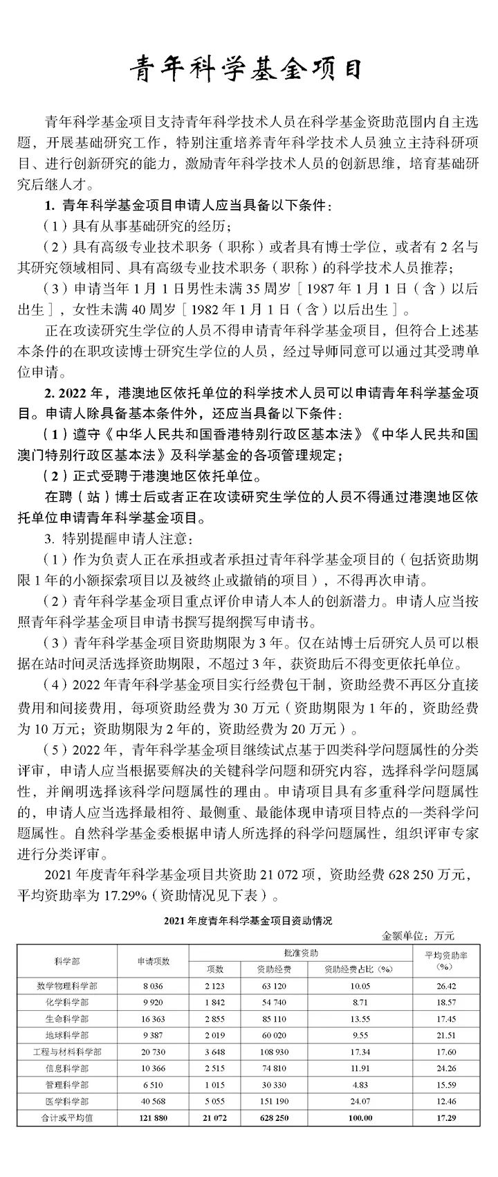 1月19日,《2022年度国家自然科学基金项目指南》正式发布,国家自然基金委员会在指南里公布了2021年项目资助情况: