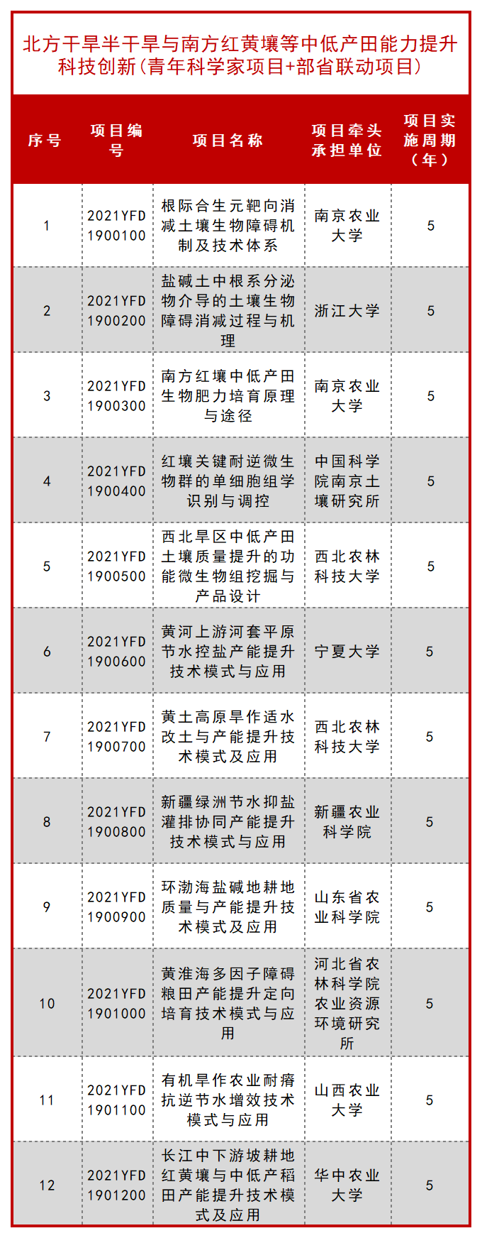北方干旱半干旱与南方红黄壤等中低产田能力提升科技创新(青年科学家项目+部省联动项目)
