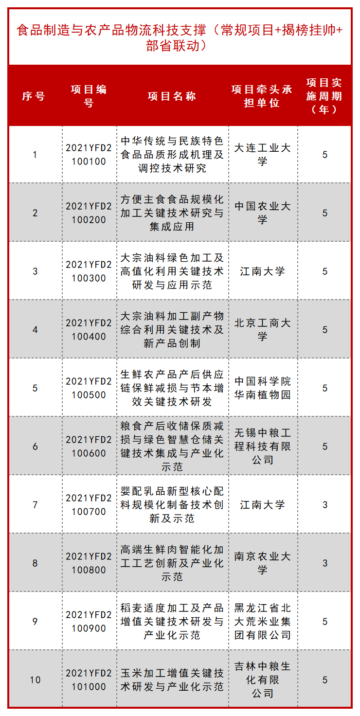 食品制造与农产品物流科技支撑(常规项目+揭榜挂帅+部省联动)