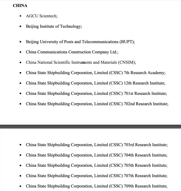 根据美媒报道,被纳入这份名单的多数是电子公司,但是也有光学公司、一家风涡轮叶片公司以及大学的国家实验室和其他公司。纳入这33个中国实体后,该名单榜上实体总数大约达到了175个。其他有实体被列入名单的国家还包括俄罗斯和阿联酋。