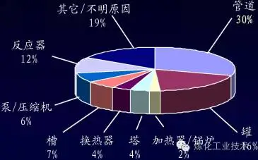 JAMP将综合考虑运行或停机维修的各种因素,如:维修部位,地方气候,现场维修条件,实际的准备情况等等。图3列出了石化行业中事故中各类设备所占的比例,可见不同部位发生腐蚀可能性有很大差异,因此维修工艺也往往有很大差异。