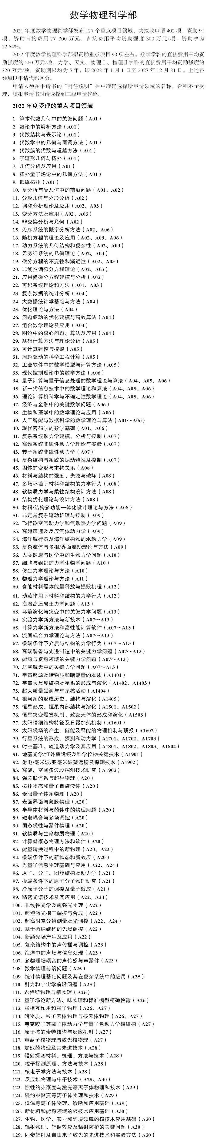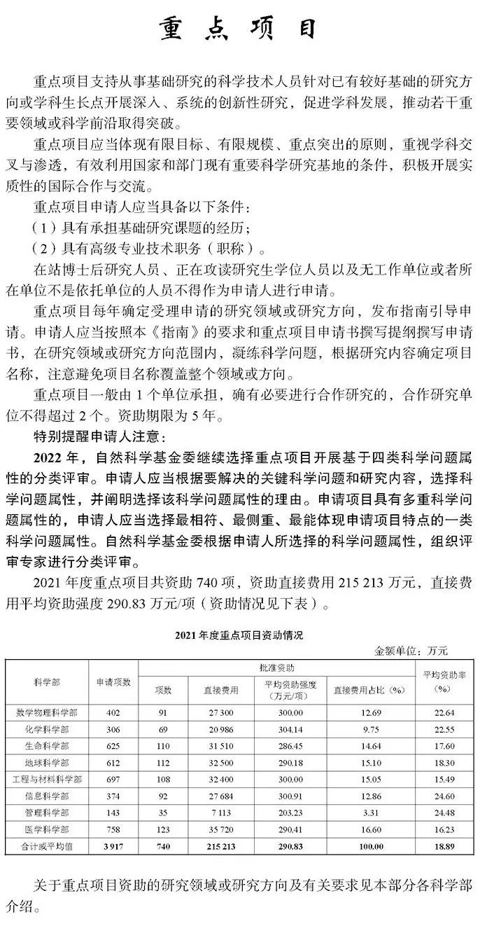 《2022年度国家自然科学基金项目指南》里面重点项目的优先资助领域: