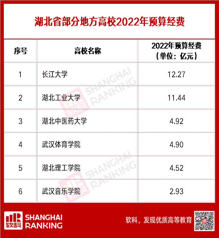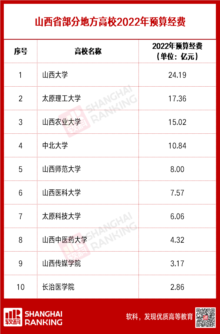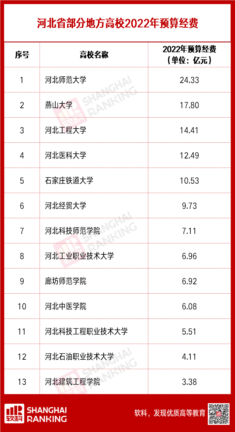 以下为各省市部分地方高校2022年预算经费: