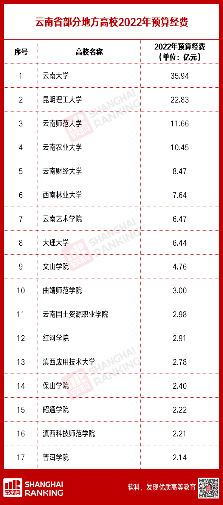 近期,全国各省市教育部门或地方高校陆续公布了2022年度的预算经费,截止目前,软科(ID:zuihaodaxue)已采集整理了北京、江苏、广东、安徽、河南、河北、湖南、湖北、江西、山西、广西、重庆、云南、甘肃等十余个省市、200余所地方高校(不完全统计)的预算经费。