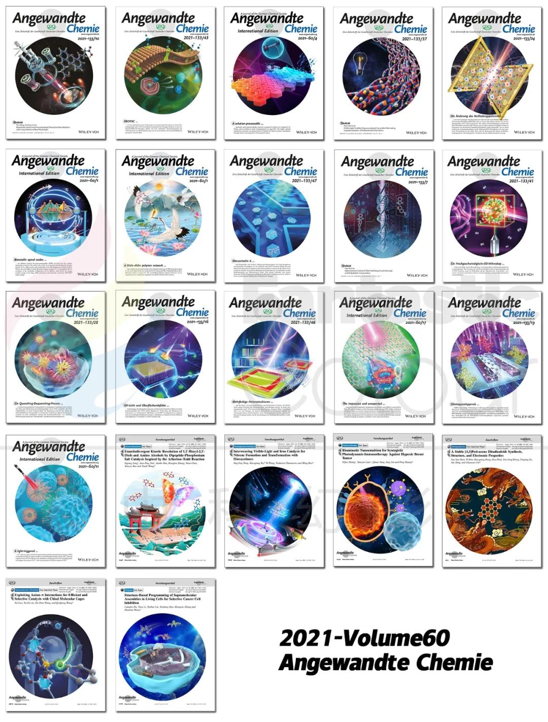 2021年,化学类顶级期刊Angew和JACS的封面中稿数量分别达到了22张和18张,继续领跑行业前茅。