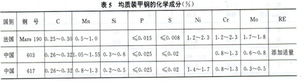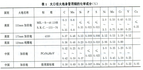 表 1 美国、英国炮钢化学成分