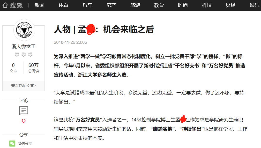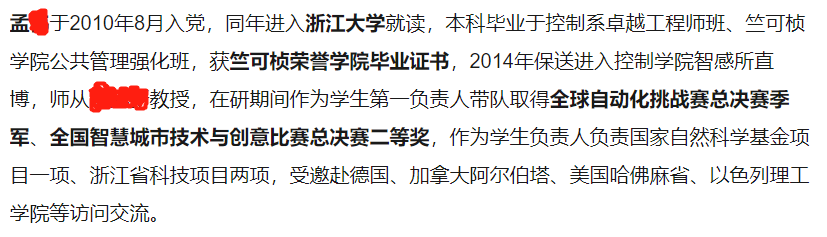 孟同学曾经的履历相当的光鲜:本科是浙大的卓越工程师班、竺可桢学院的强化班,并且是保送的本校直博,师从大佬。
