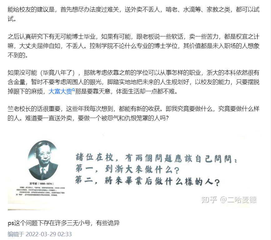 另一位自称是同样也是浙大校友的同学在该内容下进行了这样的回复: