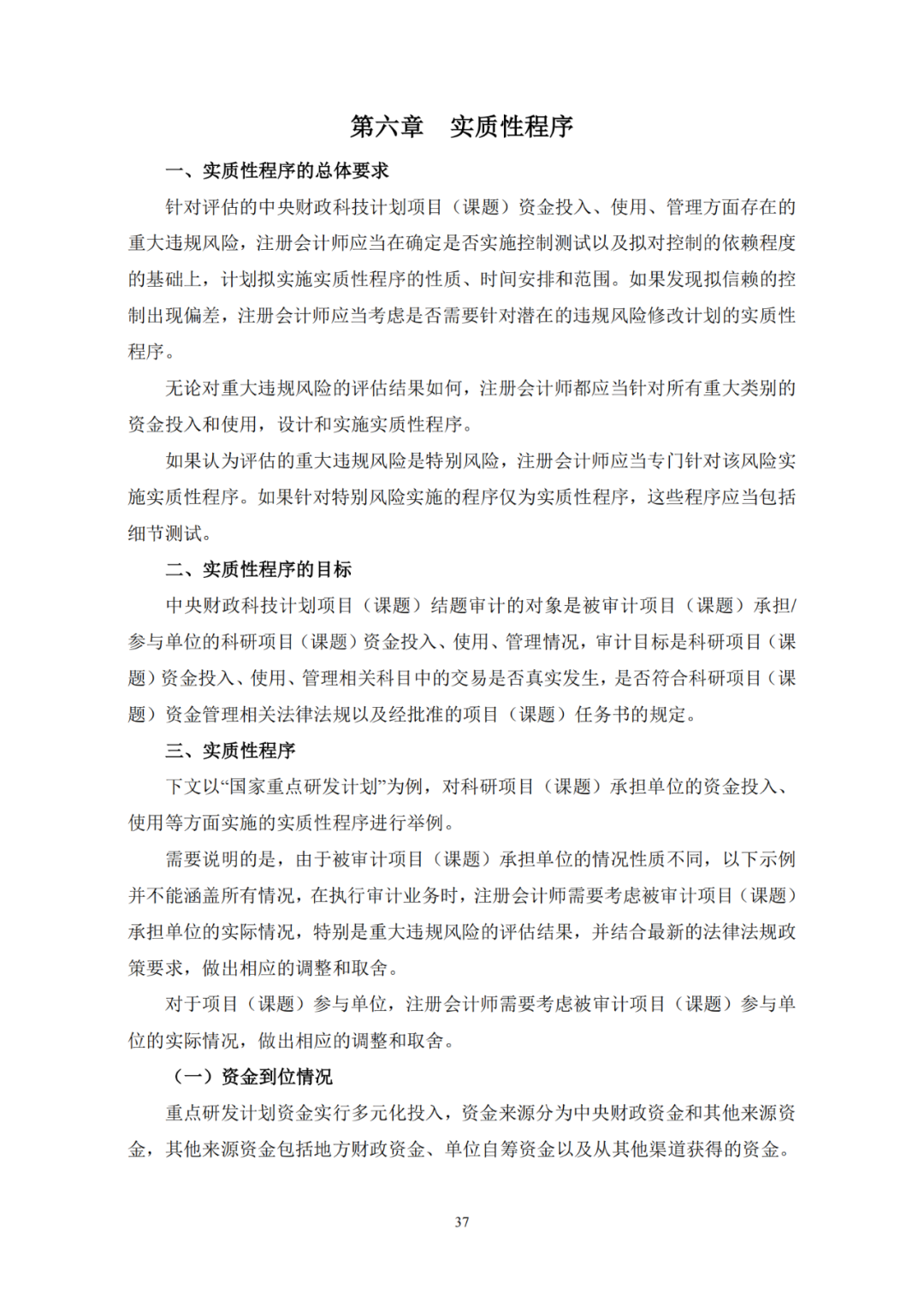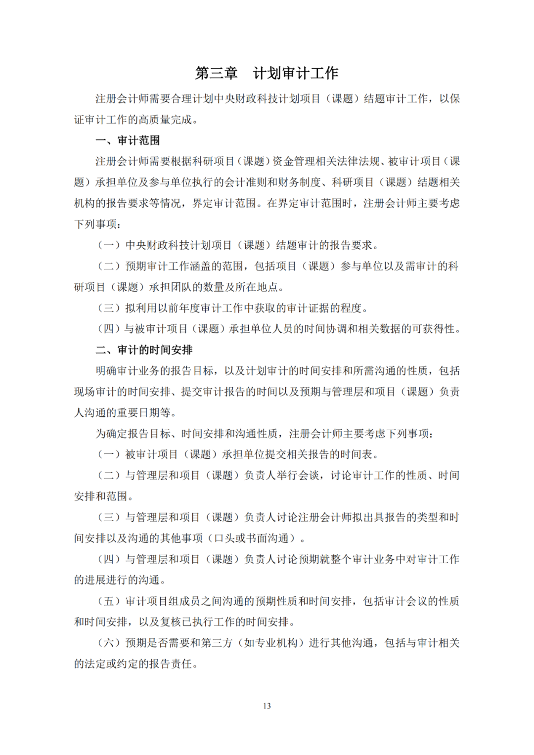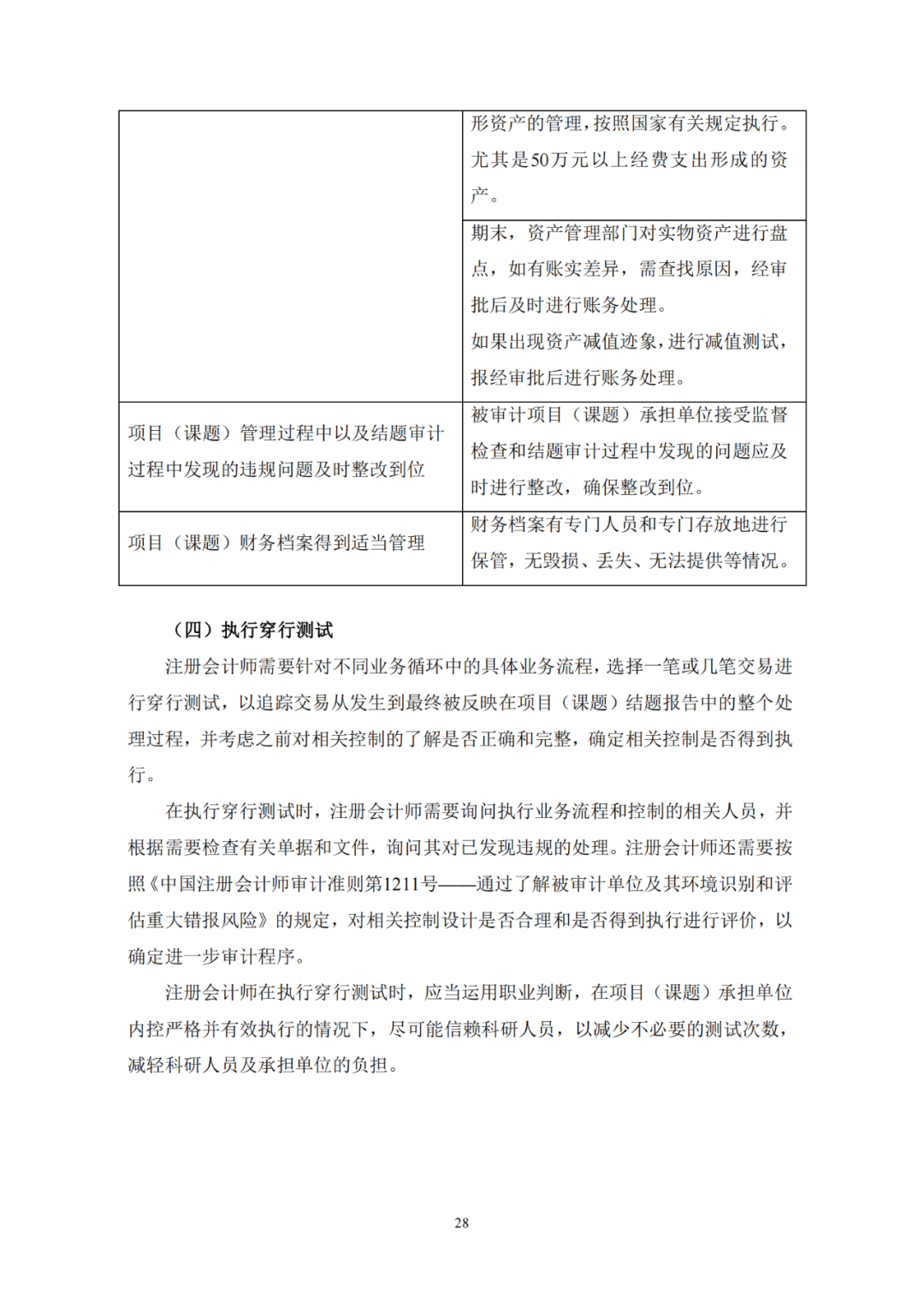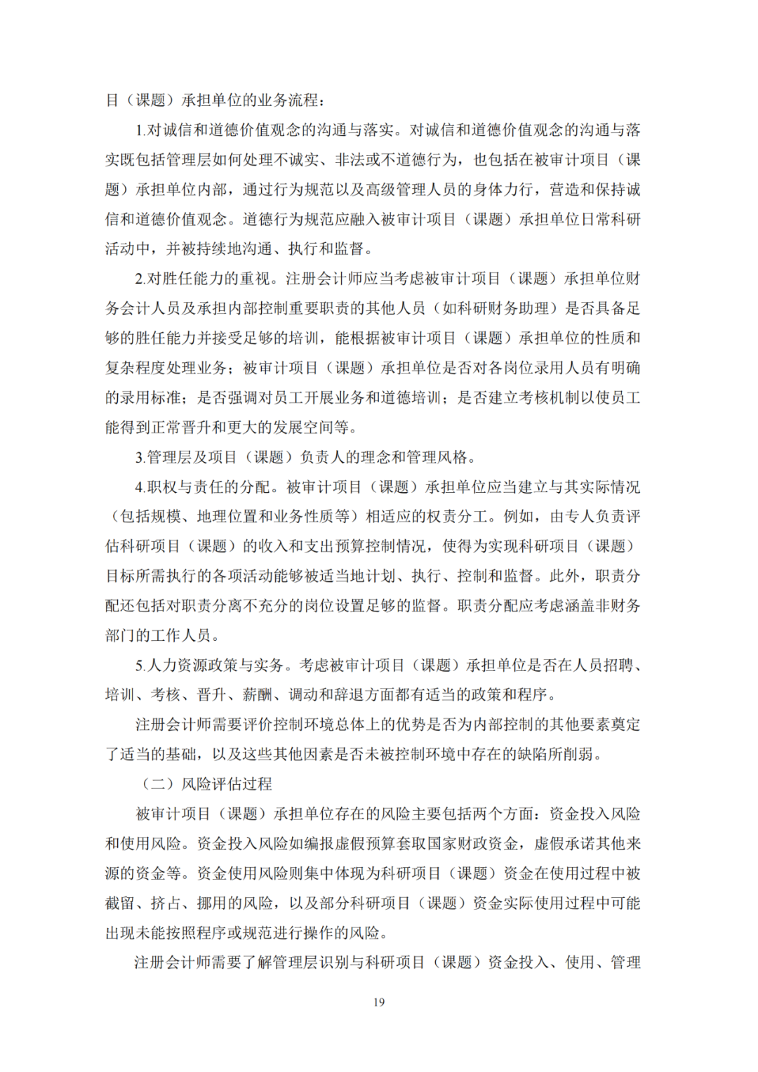 二是坚持“有效”原则,提高审计质量和效率。针对实务中存在的突出问题,提出明确、有针对性的工作要求,在减轻科研人员负担的同时,指导注册会计师更好地运用职业判断,执行恰当的审计程序,降低审计风险,提高审计质量。