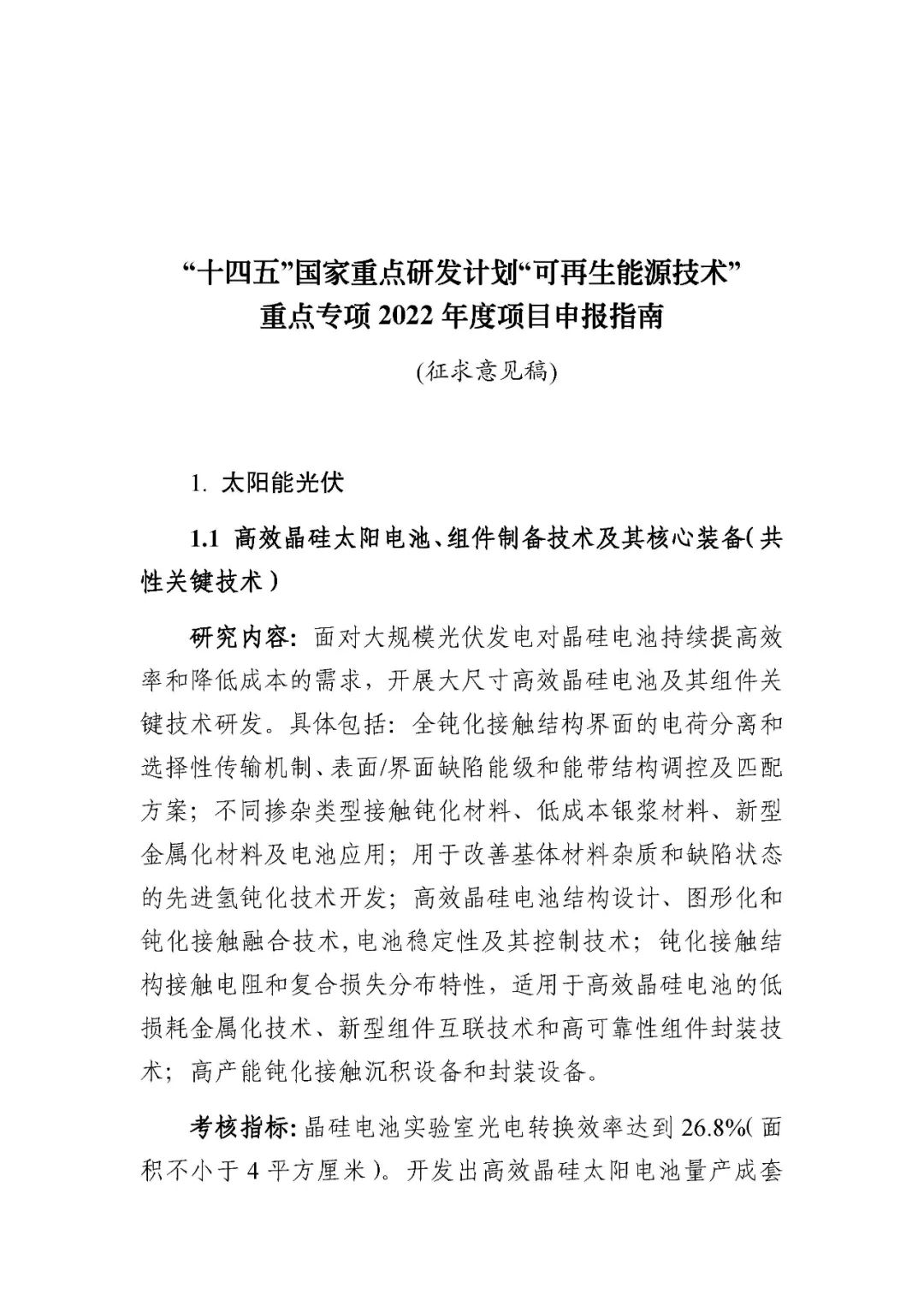 5、“可再生能源技术”重点专项2022年度项目申报指南(征求意见稿)