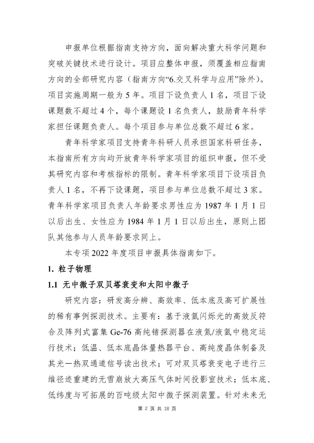 1、“大科学装置前沿研究”重点专项2022年度项目申报指南(征求意见稿)