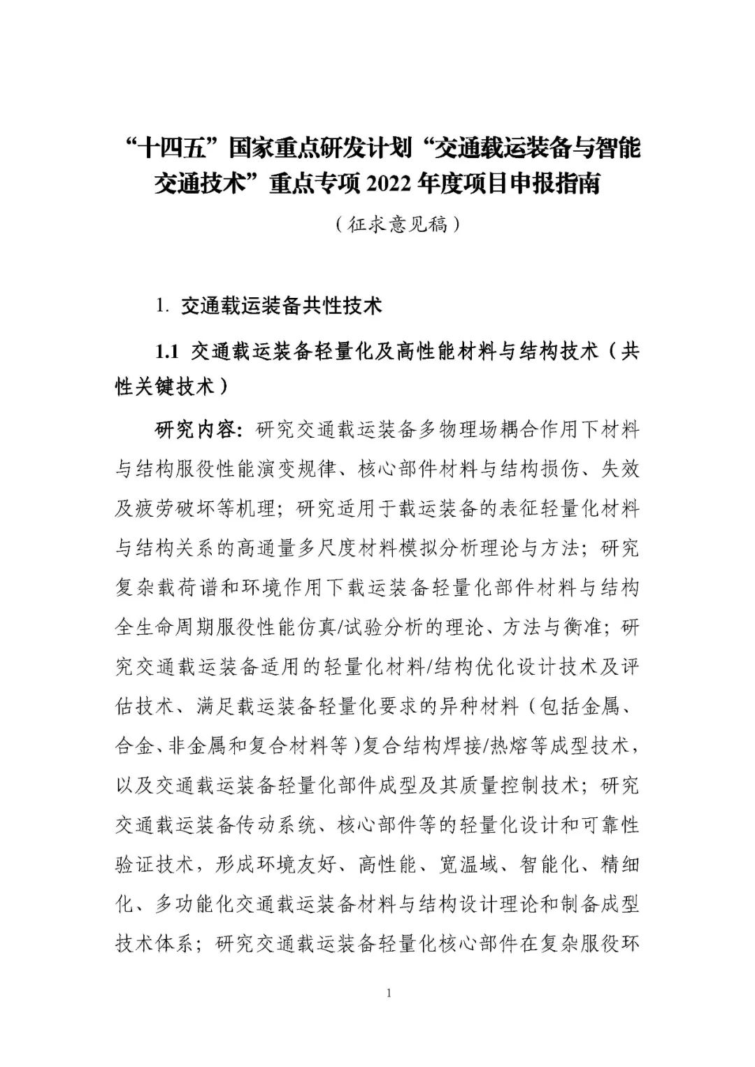 8、“交通载运装备与智能交通技术”重点专项2022年度项目申报指南(征求意见稿)