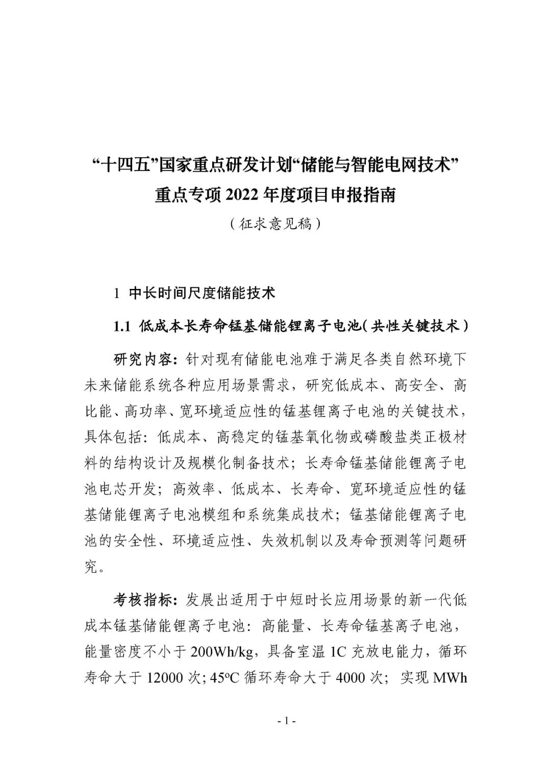 6、“储能与智能电网技术”重点专项2022年度项目申报指南(征求意见稿)