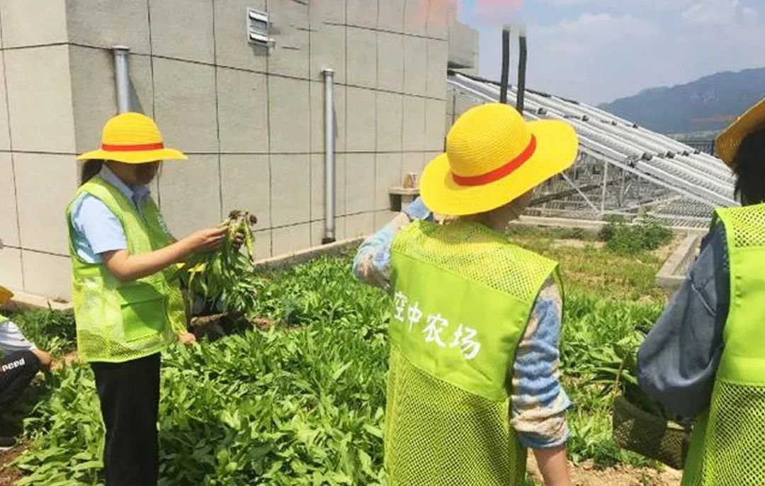 再说说学校有趣的“空中农场”——200多名师生在宿舍楼的楼顶开辟了3200多平方米的农场。