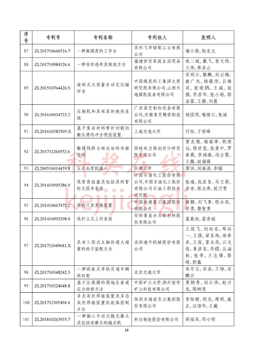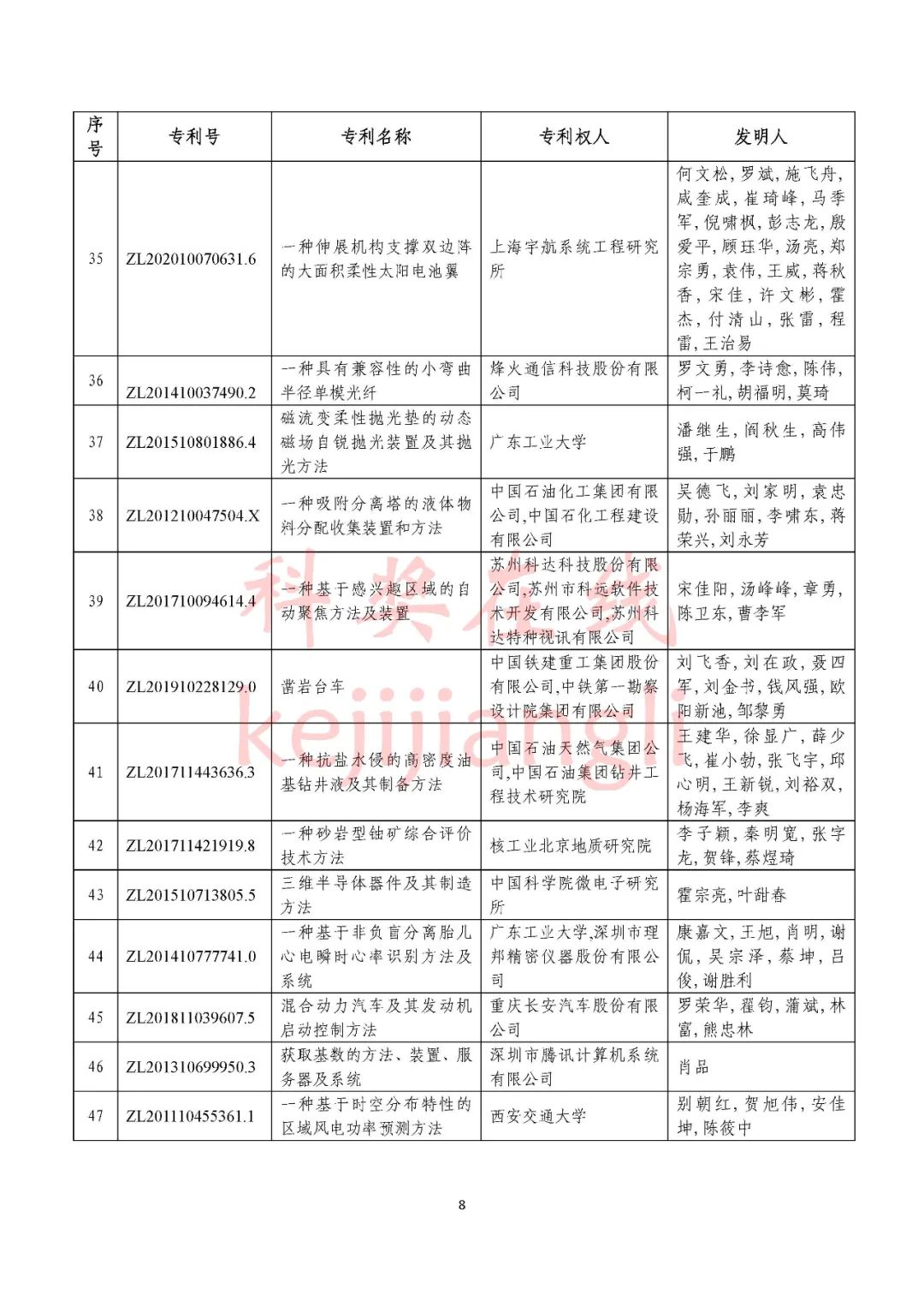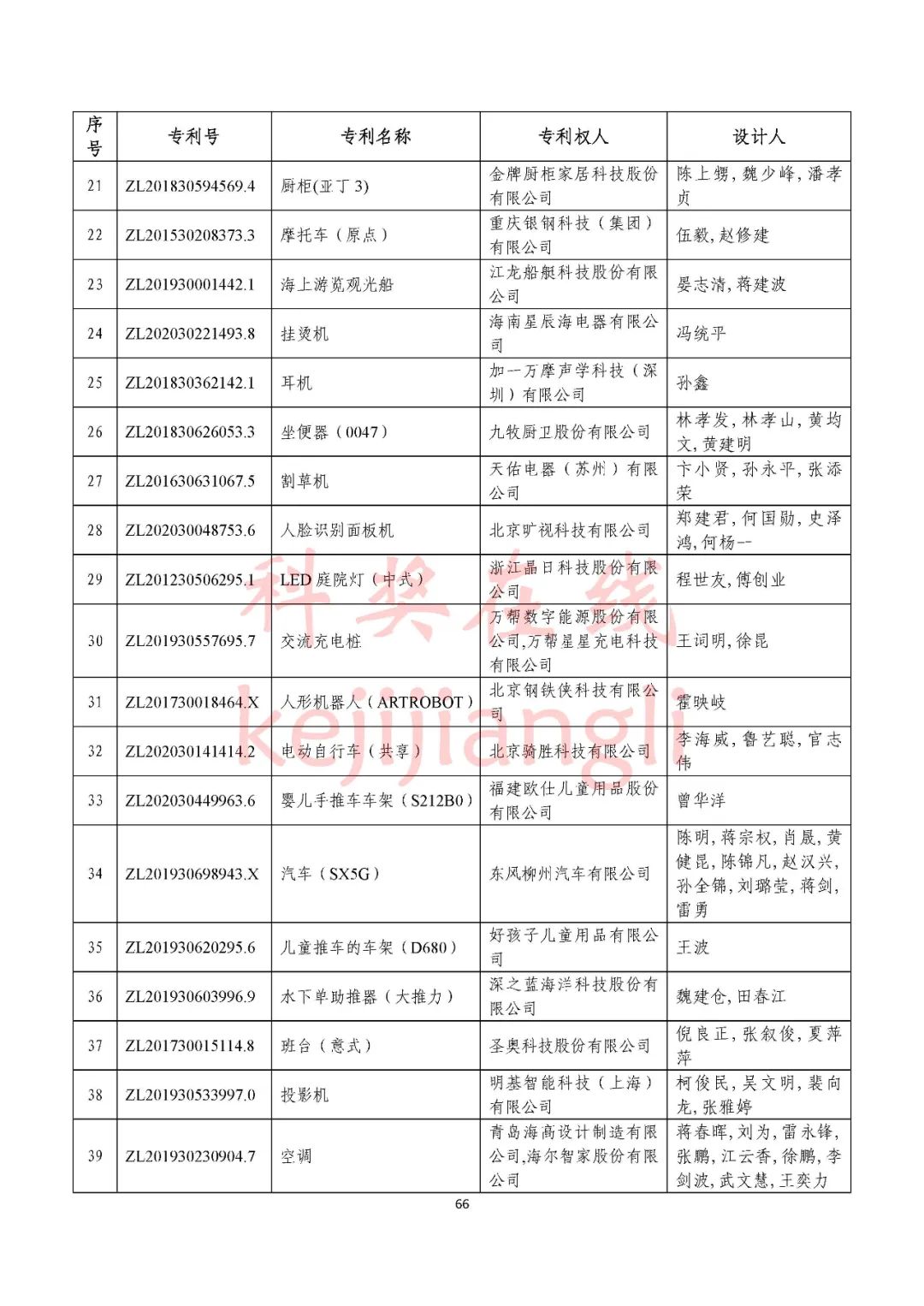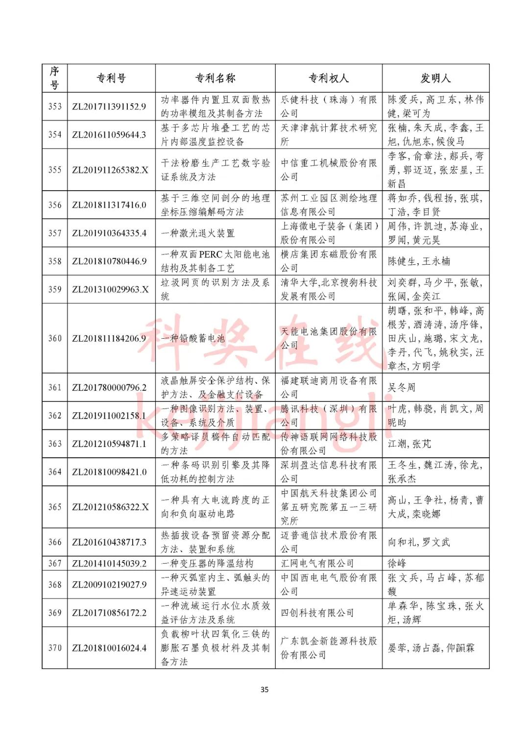 根据《中国专利奖评奖办法》《国家知识产权局关于评选第二十三届中国专利奖的通知》规定,第二十三届中国专利奖共评选出:中国专利金奖预获奖项目30项,中国外观设计金奖预获奖项目10项,中国专利银奖预获奖项目60项,中国外观设计银奖预获奖项目15项,中国专利优秀奖预获奖项目792项,中国外观设计优秀奖预获奖项目52项,现予以公示,公示期为2022年4月15日至4月21日。