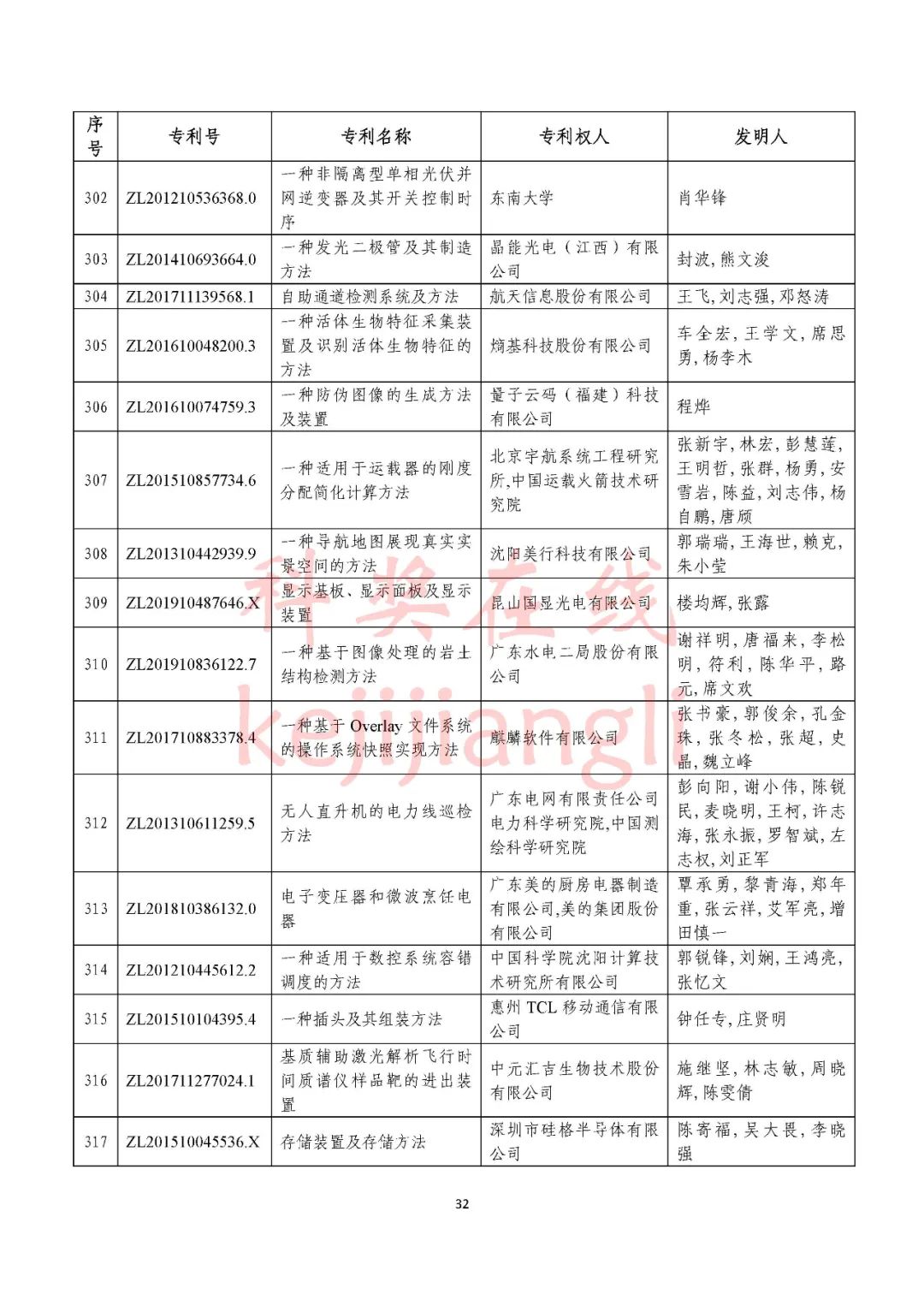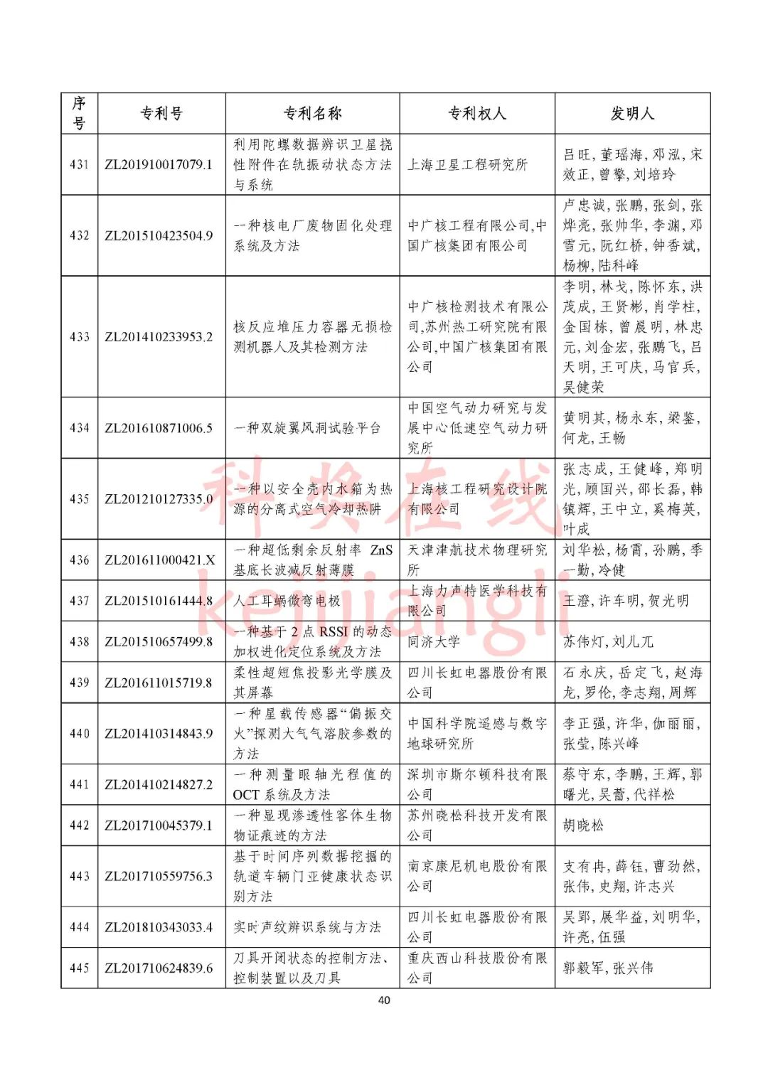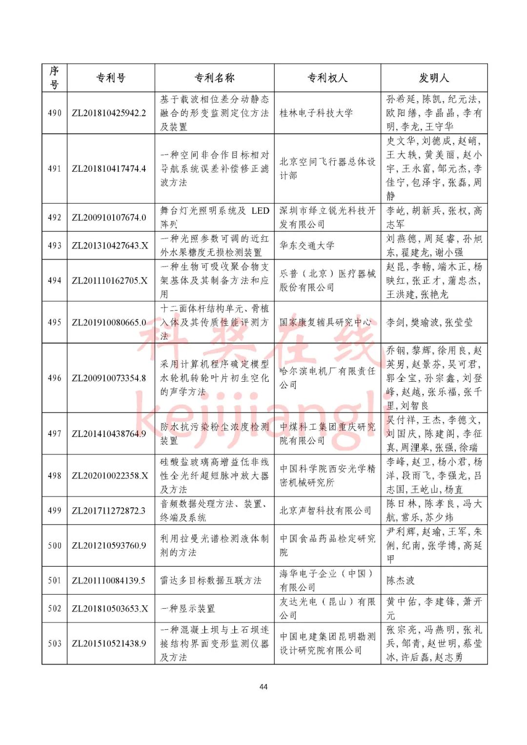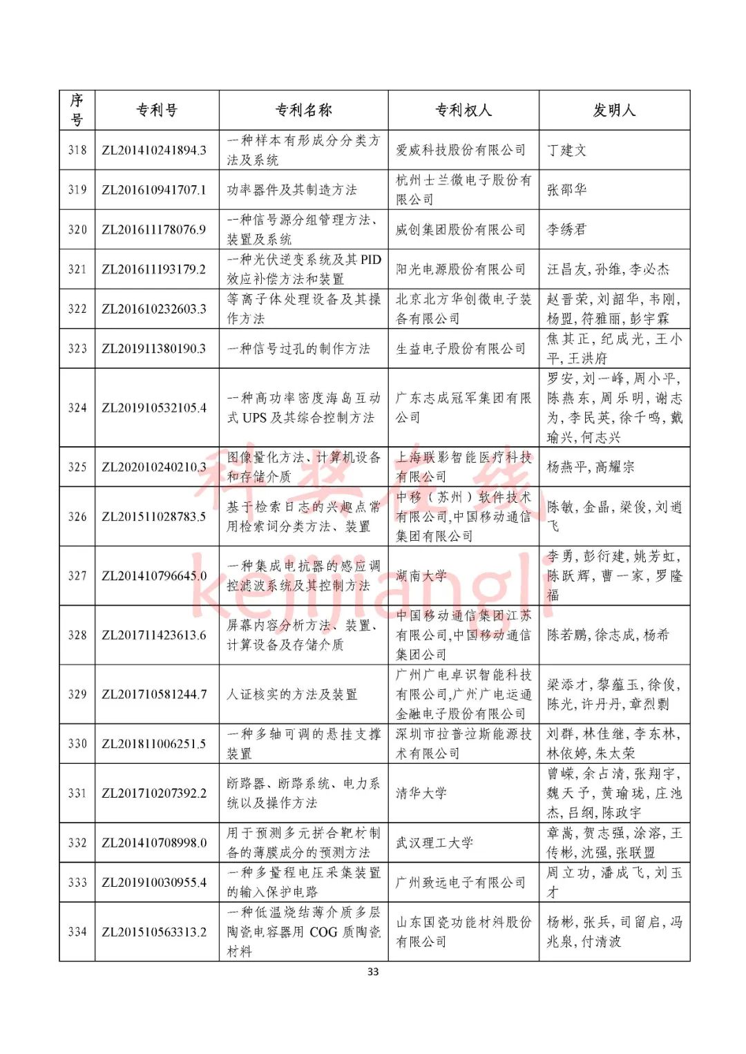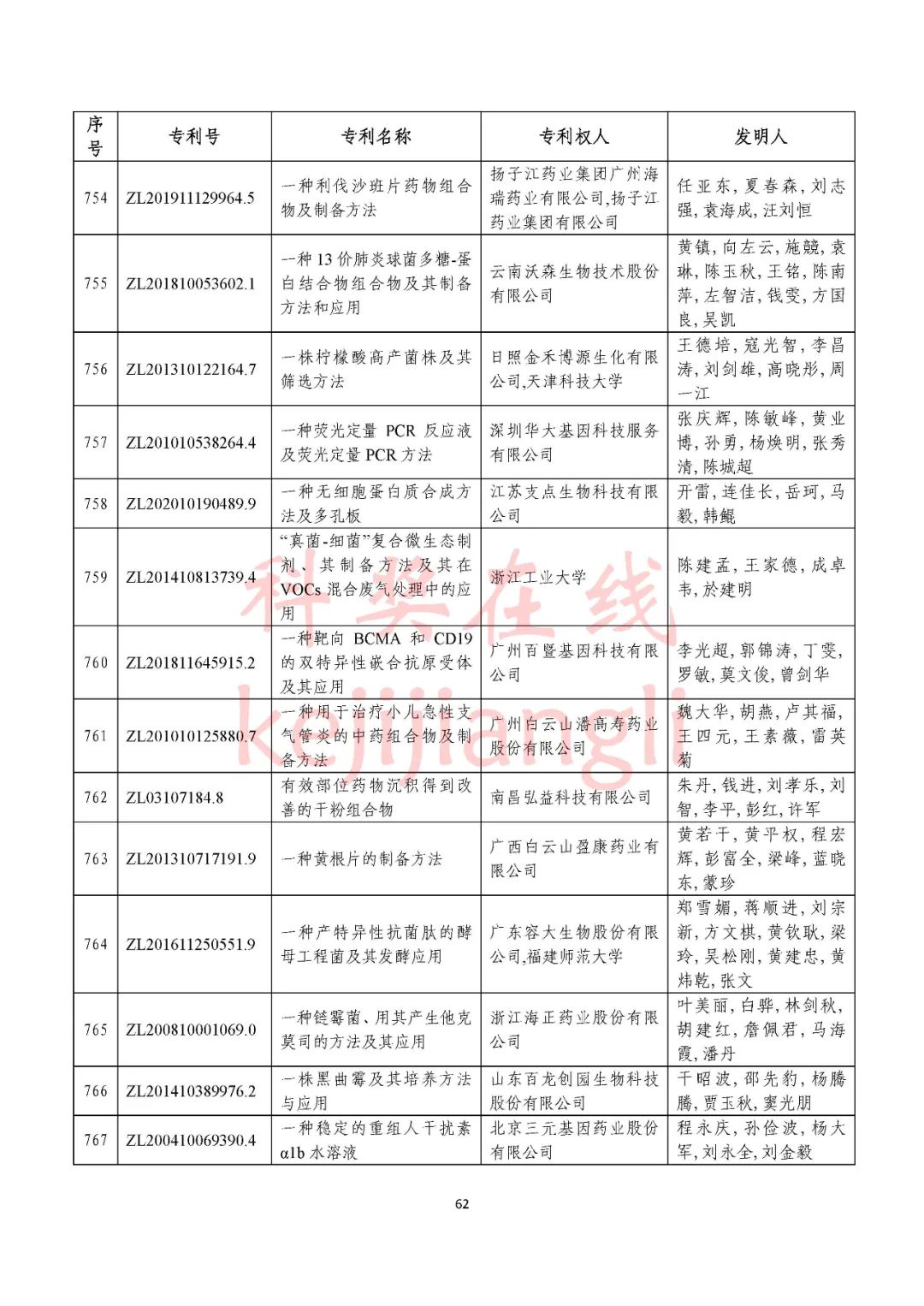 根据《中国专利奖评奖办法》《国家知识产权局关于评选第二十三届中国专利奖的通知》规定,第二十三届中国专利奖共评选出:中国专利金奖预获奖项目30项,中国外观设计金奖预获奖项目10项,中国专利银奖预获奖项目60项,中国外观设计银奖预获奖项目15项,中国专利优秀奖预获奖项目792项,中国外观设计优秀奖预获奖项目52项,现予以公示,公示期为2022年4月15日至4月21日。