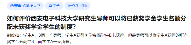 据网友指出,西电疑似存在这样的制度:导师可以决定将已获得奖学金学生名额分配给未获奖学金的学生。
