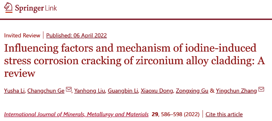 (1) 系统地总结了锆合金发生碘致应力腐蚀开裂的机理。