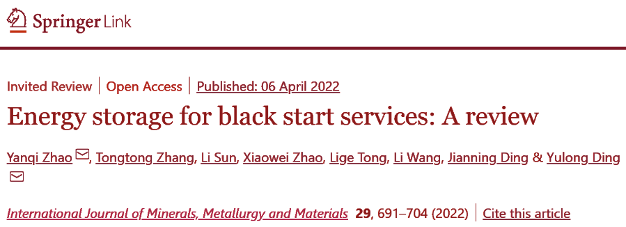 (2) 分析比较了基于电能、热能、机械能多种储能方式在黑启动系统中应用前景。