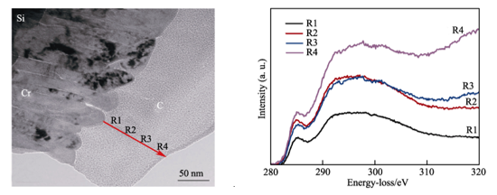 Cr/GLC涂层的TEM和EELS结果表明:Cr过渡层利于界面处特殊咬合提高结合力和石墨化