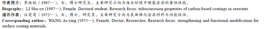 关键词:海洋环境;物理气相沉积;氮基涂层;碳基涂层;磨蚀性能;失效机理