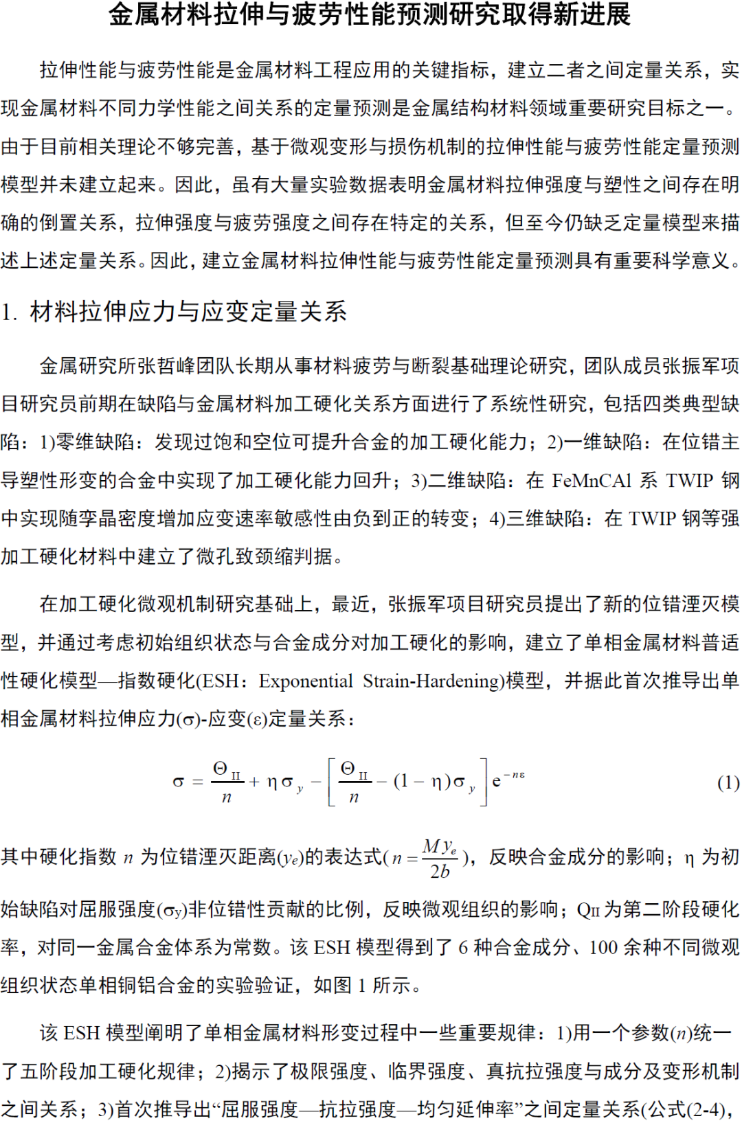 金属材料拉伸与疲劳性能预测研究取得新进展
