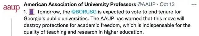 2021年10月,美国乔治亚州立董事会对高校终身教授评价系统进行了投票。