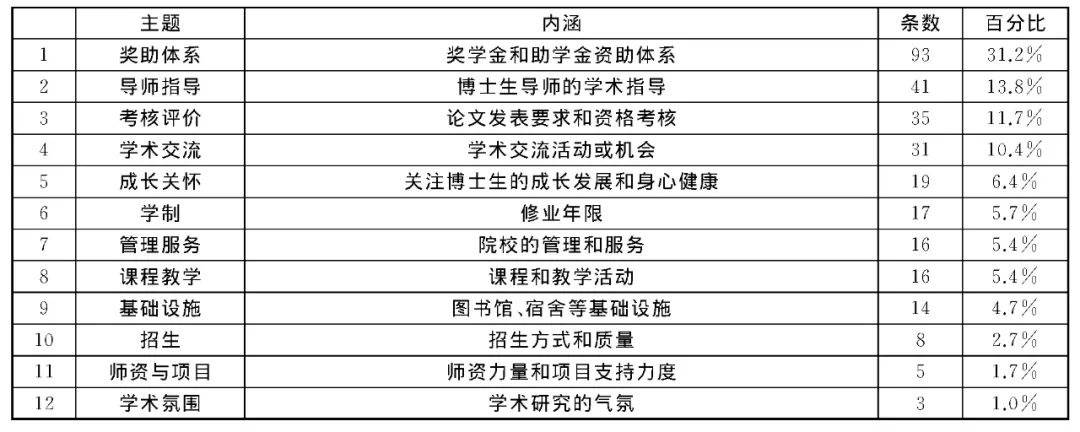 博士生意见涉及的主题情况