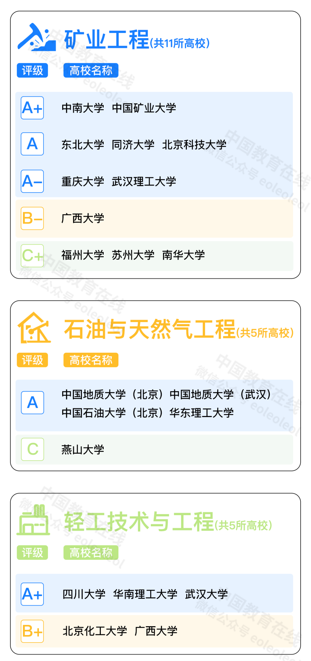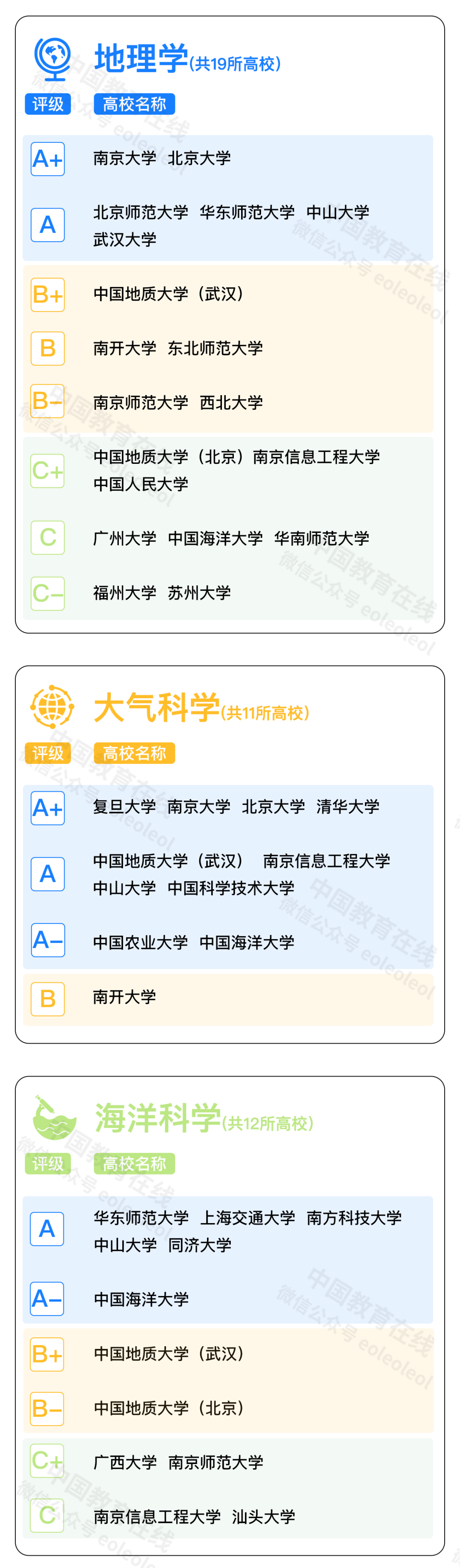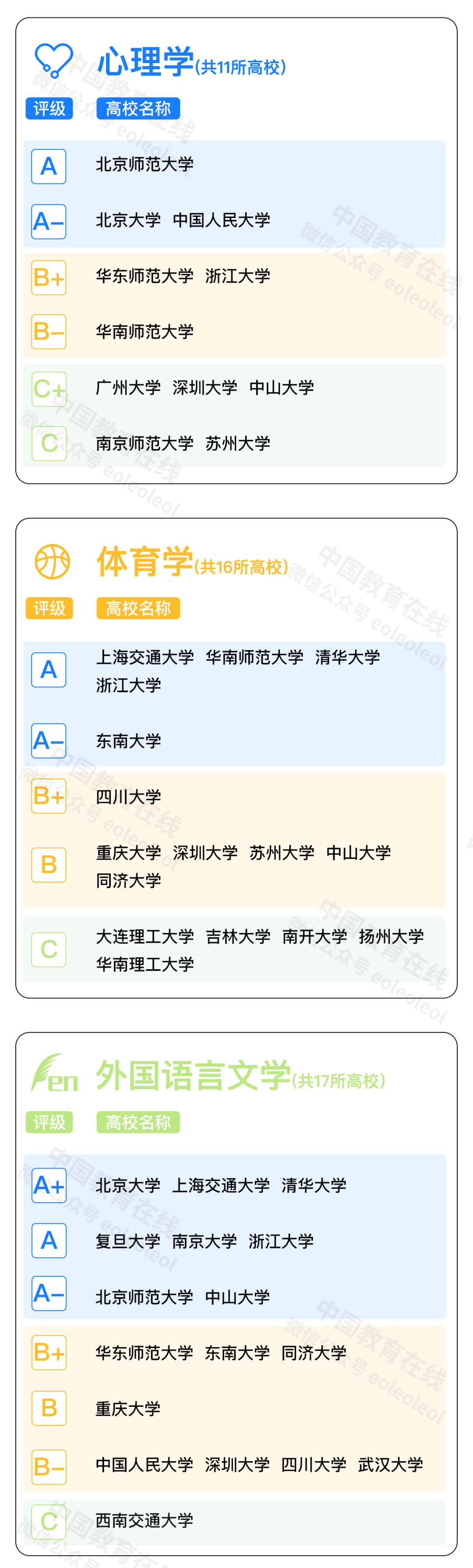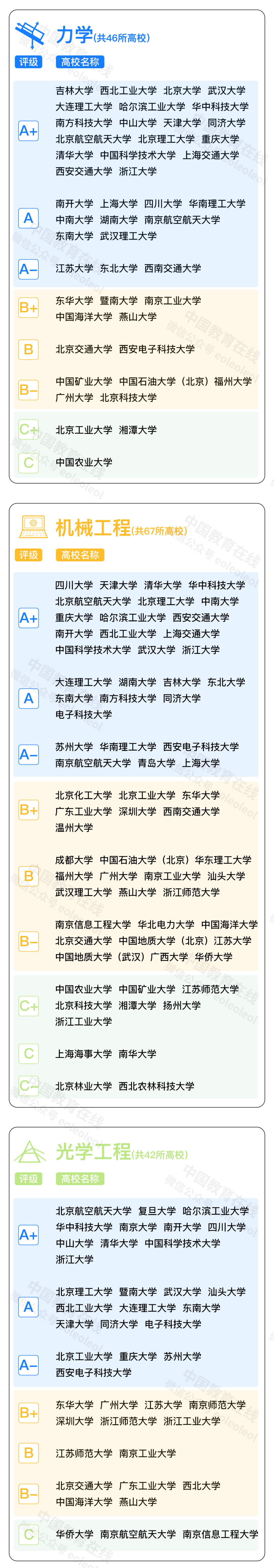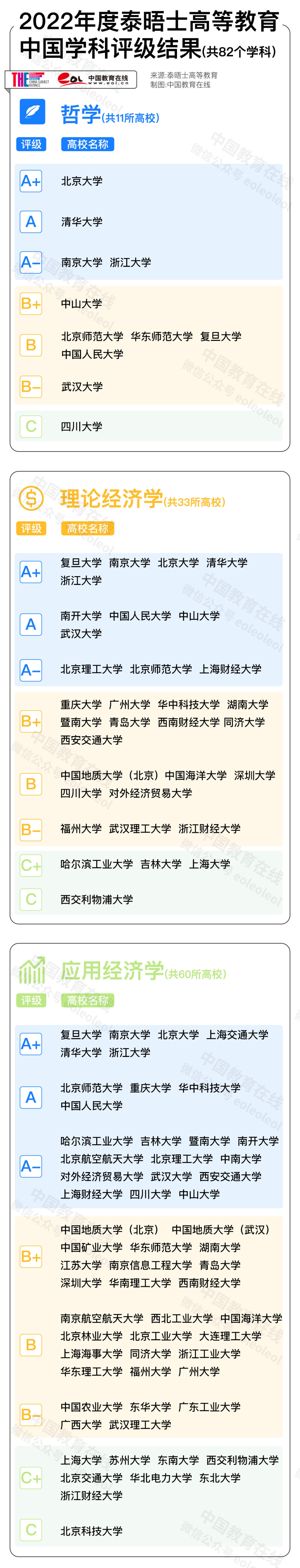 注:同一评级结果的大学不分先后