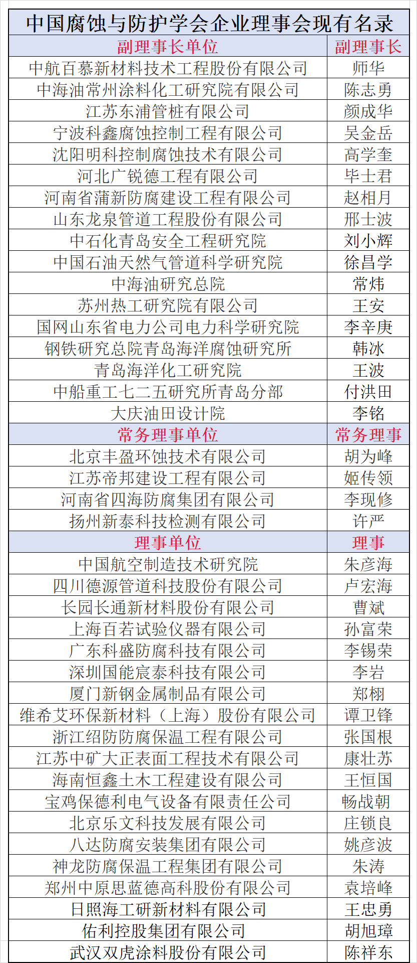 欢迎加入中国腐蚀与防护学会企业理事会,请联系: