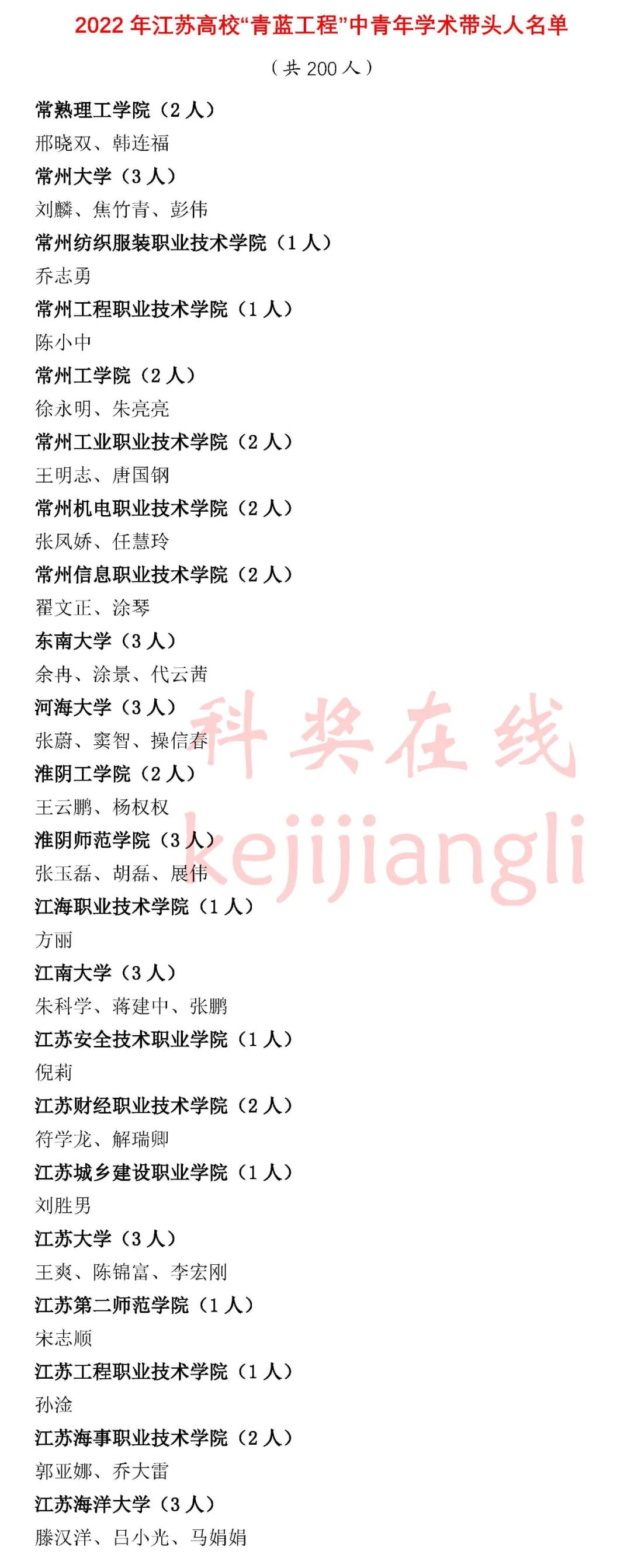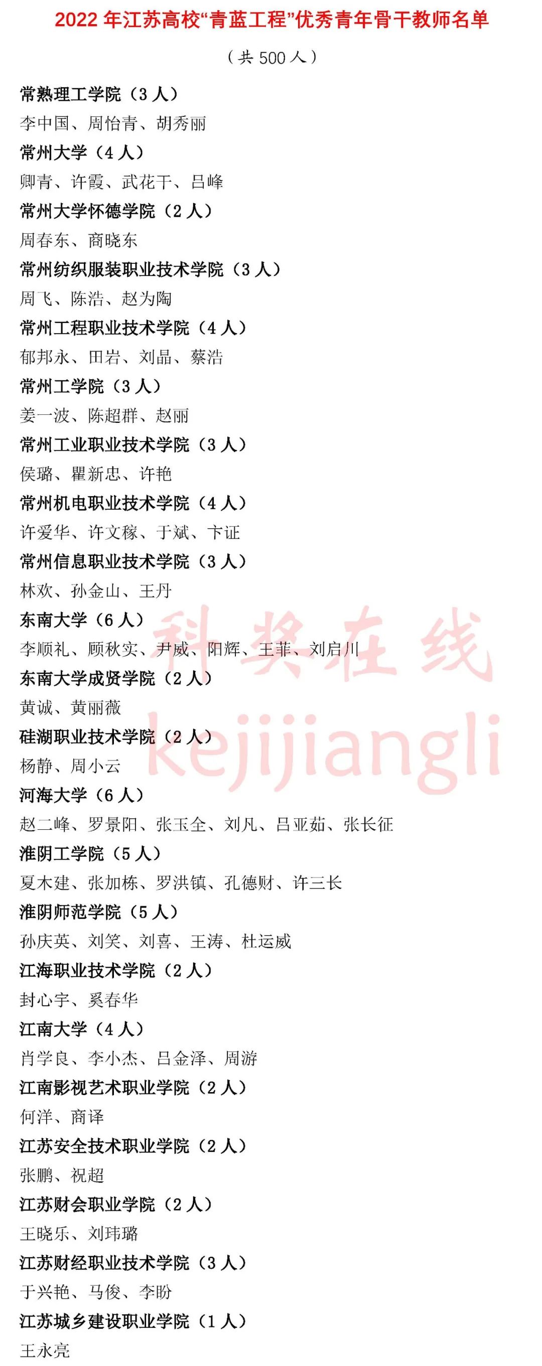 2022年江苏高校“青蓝工程”培养对象名单公示