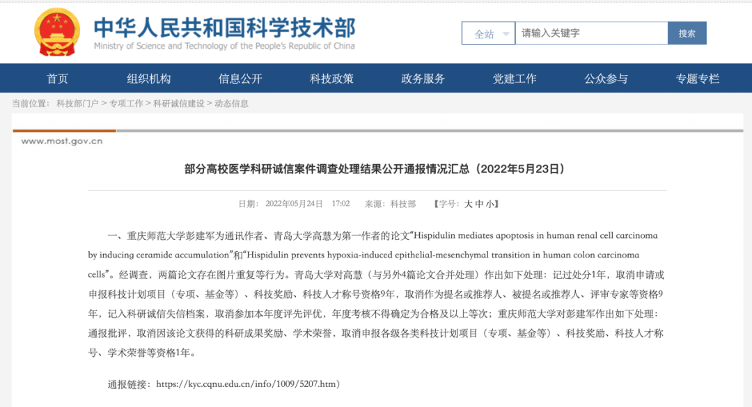 5月24日,科技部网站通报24起高校医学科研诚信案件调查处理结果。