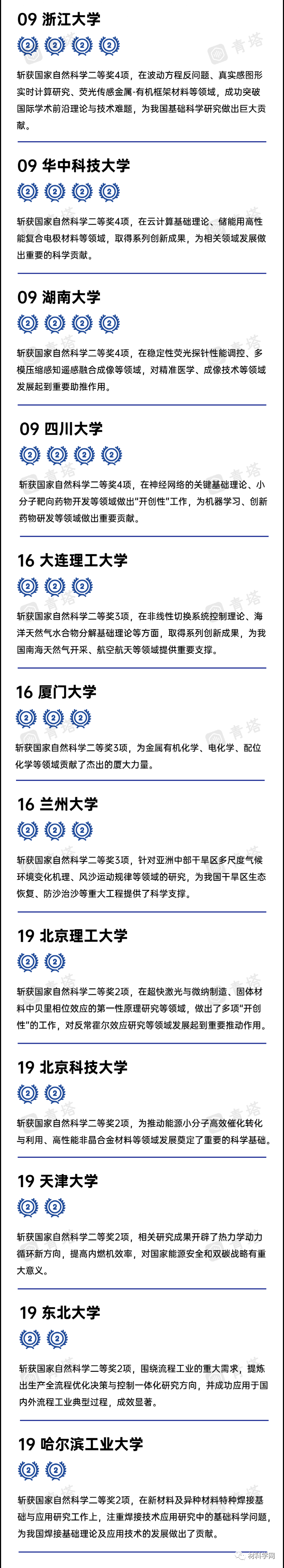 (榜单根据各高校斩获的国家自然科学一等奖数量、二等奖数量及高校代码进行综合排序;仅包含通用项目,仅统计第一完成单位,合并附属医院)