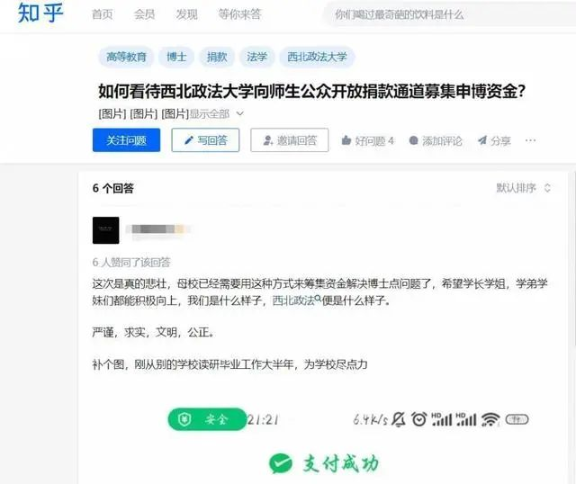 近日,有网友透露,西北政法大学冲刺申请博士点,校长范九利带头捐出了一个月的工资。