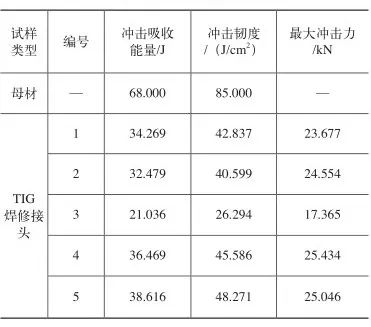 图7 TIG焊修复接头冲击曲线