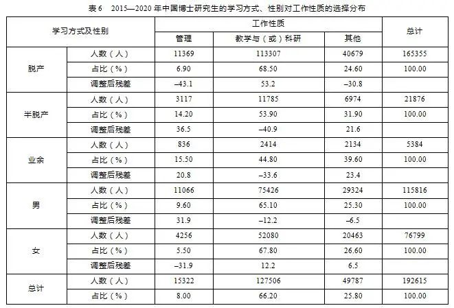 通过对我国2015—2020年博士毕业生去向数据总体情况以及就业特征分析,可以得出以下结论: