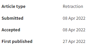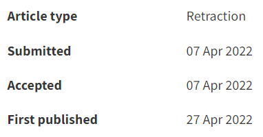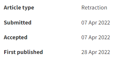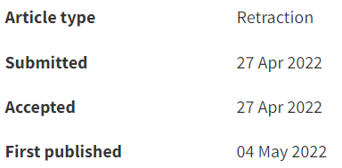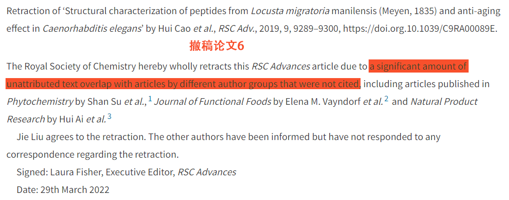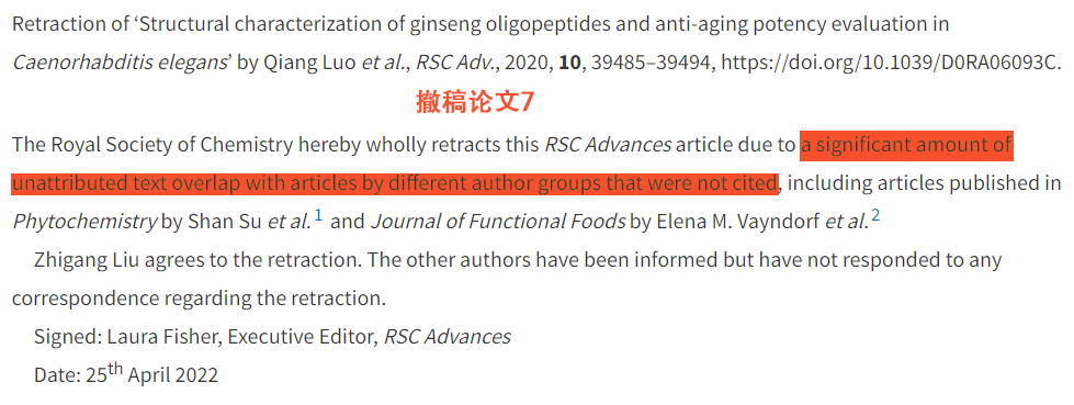 4月27日,RSC Advances杂志发布了5篇撤稿通报:除了论文3,其余4篇的撤稿通报的发布决定时间都在4月7日