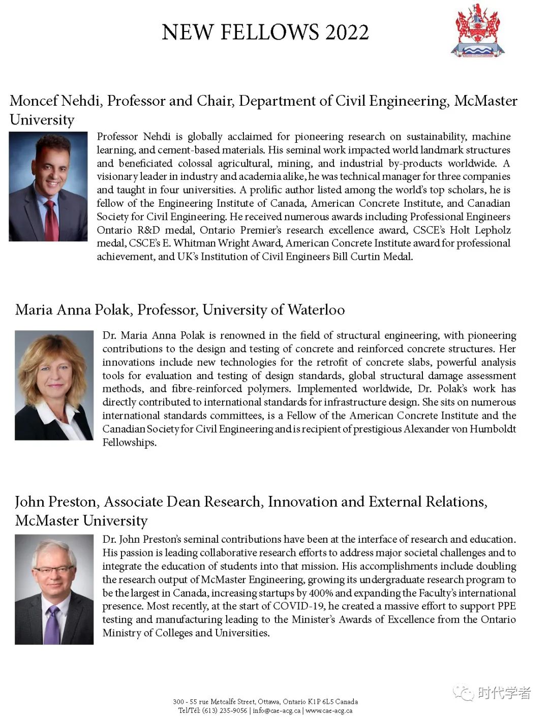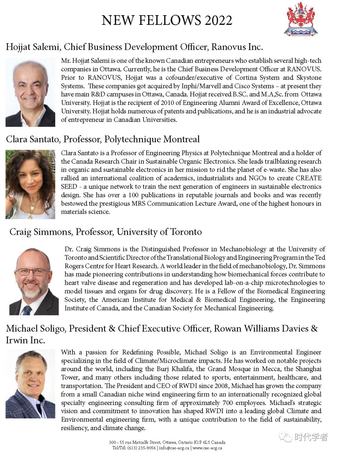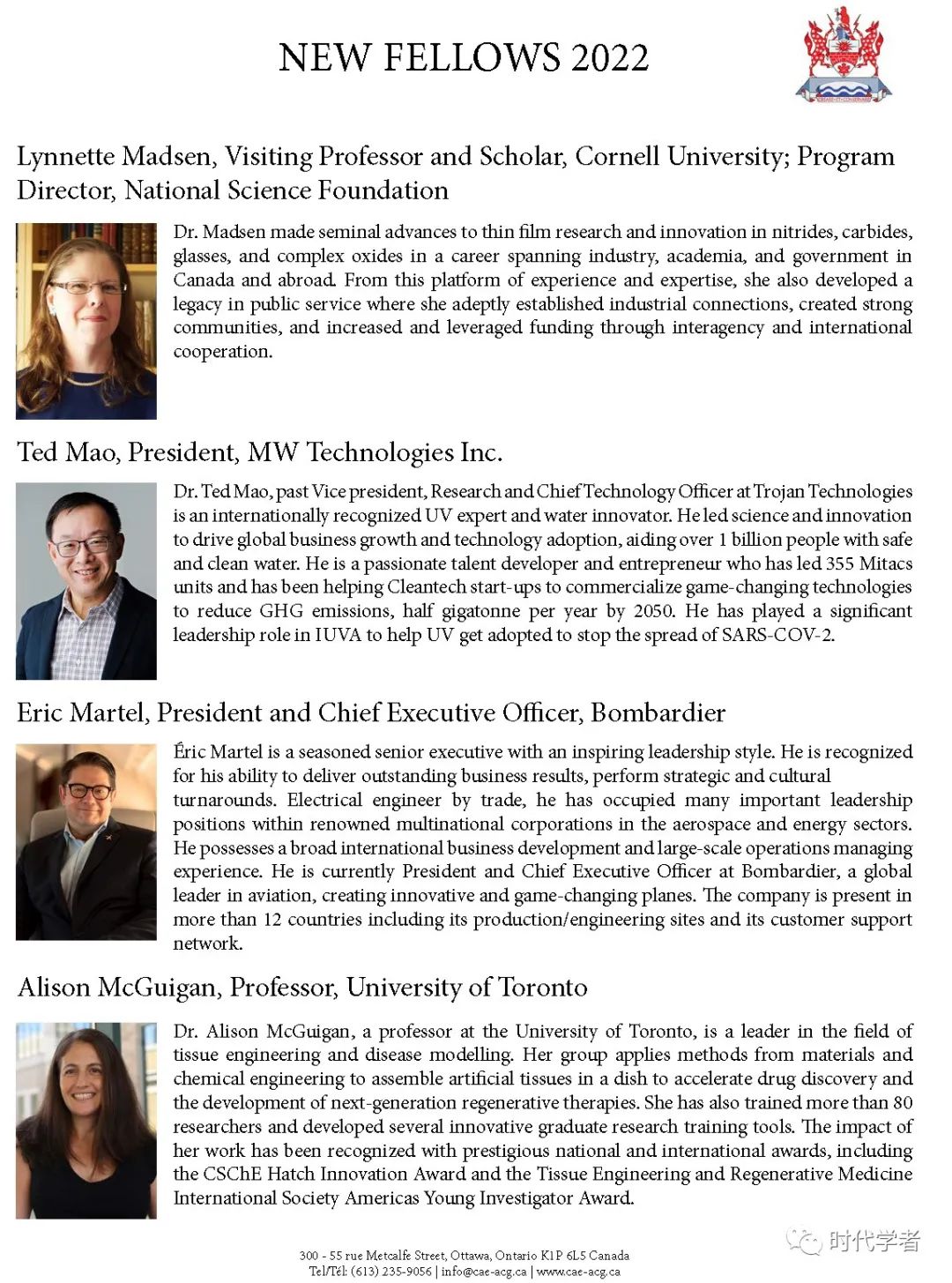 加拿大工程院(The Canadian Academy of Engineering)成立于1987年,是一个独立、自治的非盈利组织,入选人员由同行提名和选举产生,主要标准是参选者在研究领域的杰出成就和在工程专业上的长期服务。