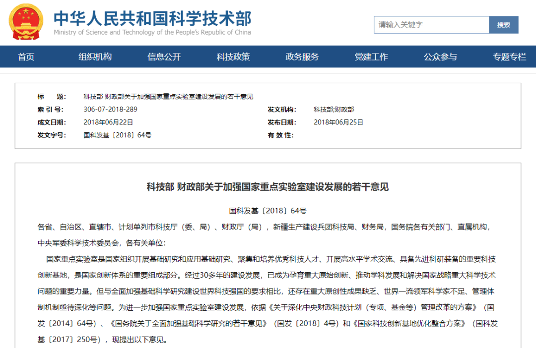 近几年,国家相关部门多次发文推进国家重点实验室重组改革。