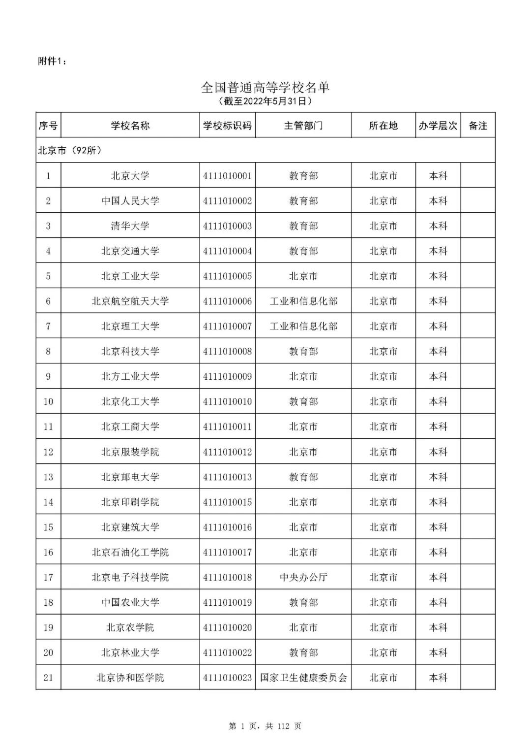 6月17日,教育部发布《全国高等学校名单》,截至2022年5月31日,全国高等学校共计3013所,其中:普通高等学校2759所,含本科院校1270所、高职(专科)院校1489所;成人高等学校254所。本名单未包含港澳台地区高等学校。一起来看《全国普通高等学校名单》——