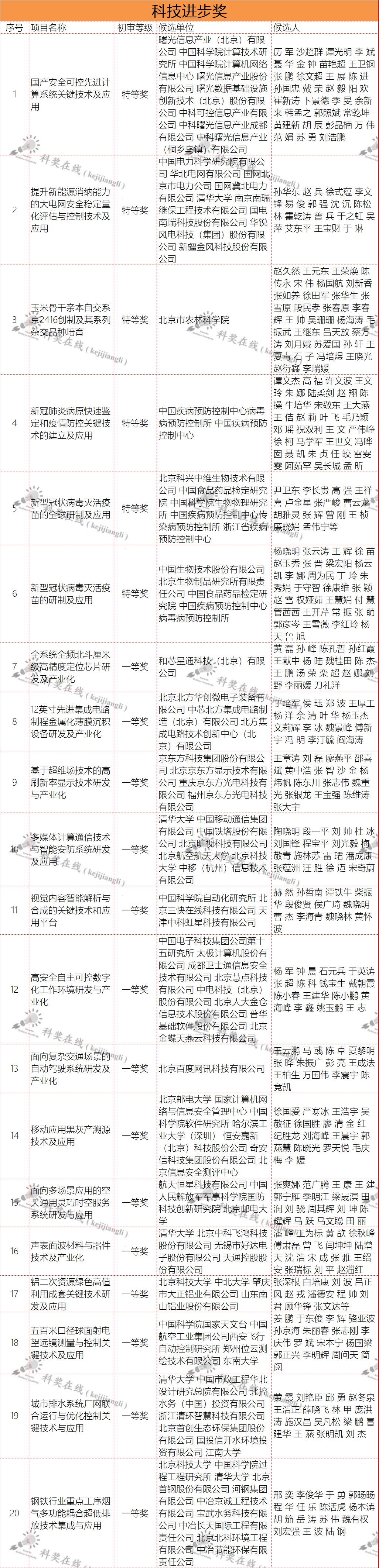 2021年度北京市科学技术奖项目奖初审结果公示通知