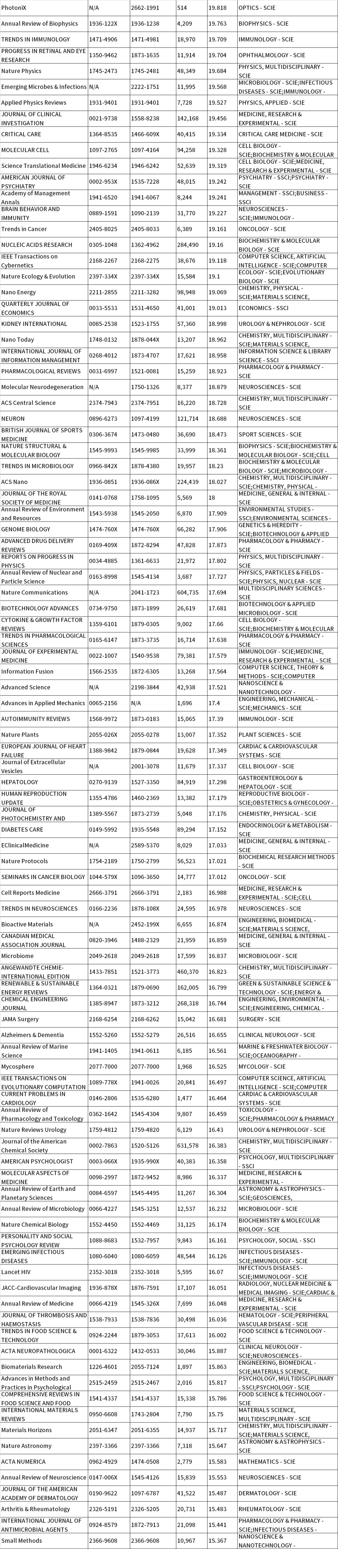 最新!2021年度SCI期刊影响因子预测(IF≥5)