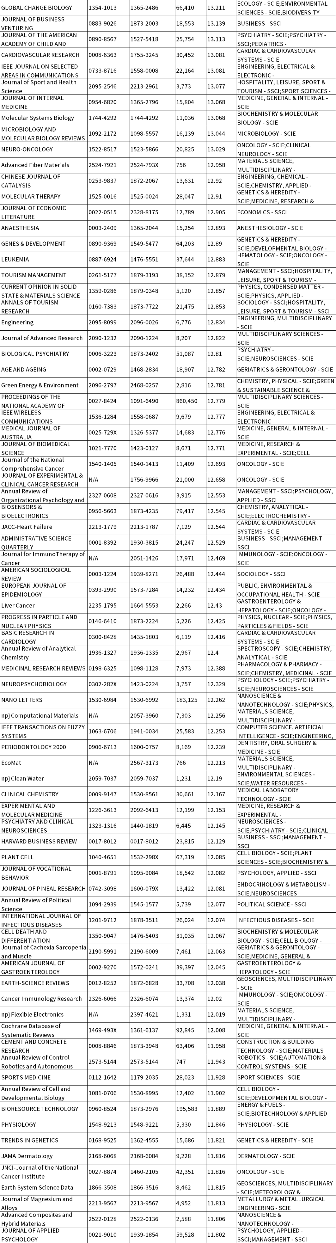 最新!2021年度SCI期刊影响因子预测(IF≥5)