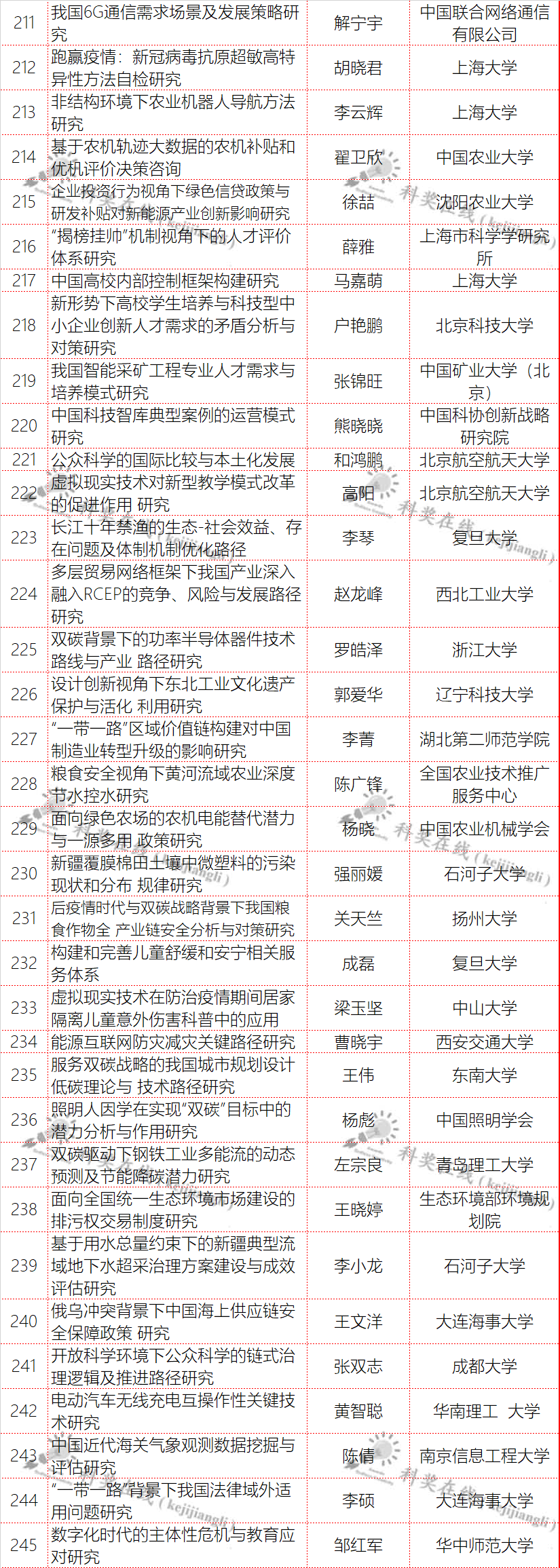2022年3月31日,中国科协战略发展部发布了《关于申报2022年度科技智库青年人才计划的通知》,广大青年科技人员积极踊跃申报。根据中国科协项目管理有关规定,经形式审查、专家匿名评审以及有关审批等程序,共评选出425人。