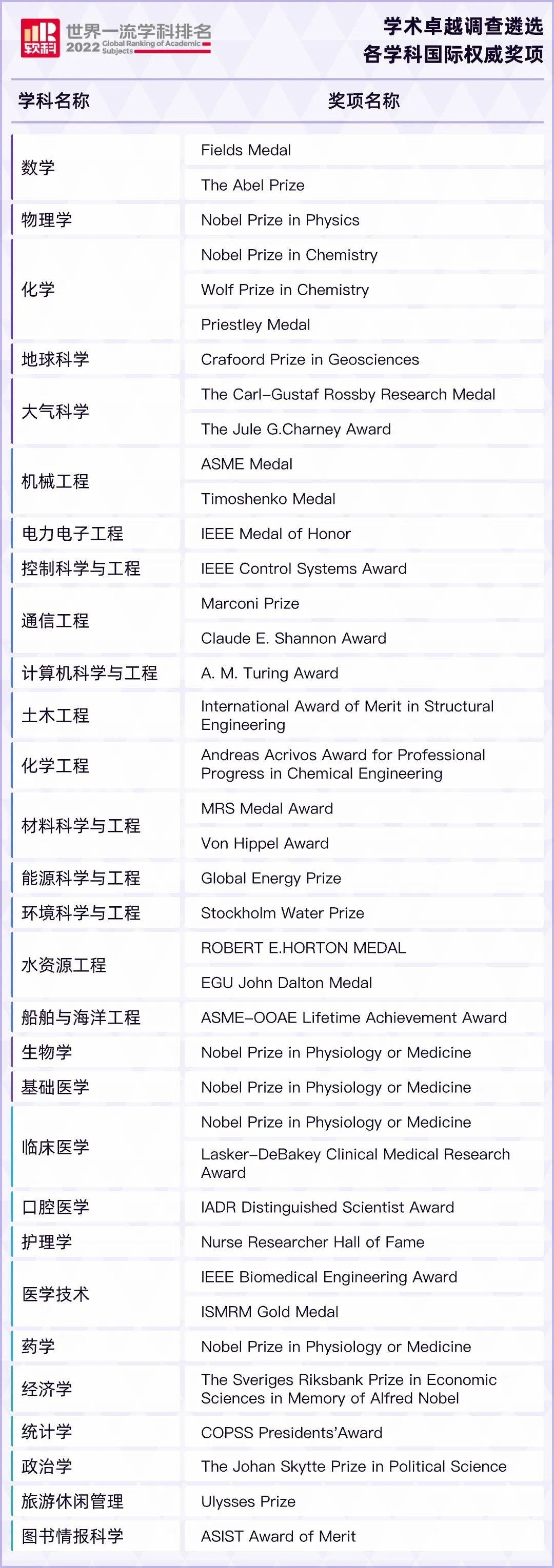 软科世界一流学科排名